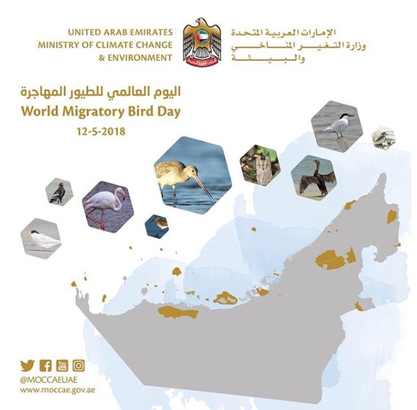 بمناسبة اليوم العالمي للطيور المهاجرة تعلن وزارة التغير المناخي والبيئة عن تحديث المواقع الهامة للطيور حيث تم تحديثها وفقا للمعايير الدولية لمنظمة بيردلايف بالتعاون مع السلطات المختصة، وتم اعتماد 30 موقع هام للطيور في الدولة موزعة على الإمارات السبع . ويهدف هذا المشروع للتعرف على مواقع الطيور المحلية والمهاجرة في الدولة مما يساهم في جهود المحافظة على هذه الانواع وارتفاع نسبة السياحة البيئية. للإطلاع على المواقع الهامة للطيور في الإمارات اضغط هنا:https://www.moccae.gov.ae/ar/open-data/gis-map.aspx