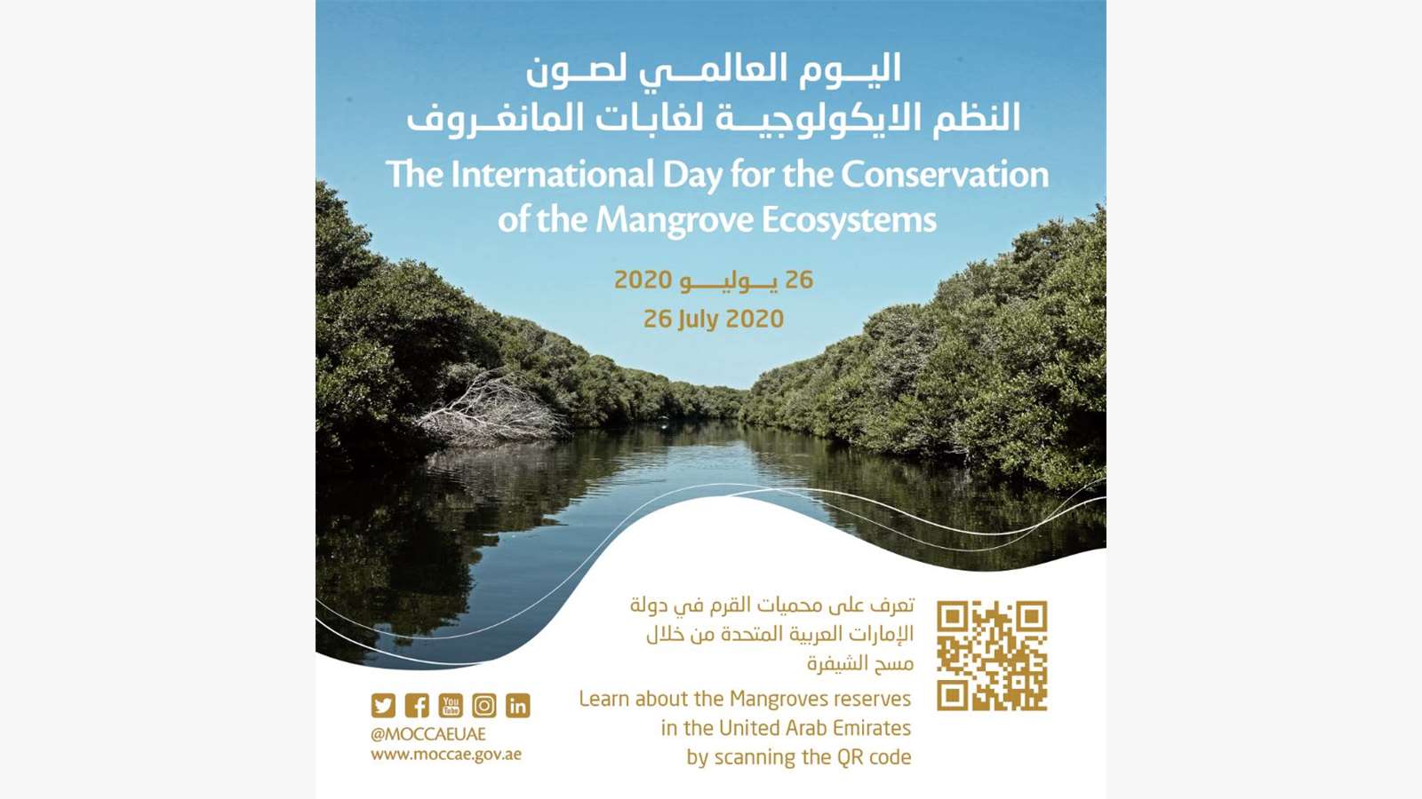 تحتفل #وزارة_التغير_المناخي_والبيئة باليوم العالمي لصون #النظم_الايكولوجية لغابات #المانغروف حيث تعد أشجار المانغروف عنصراً أساسياً في #النظم_البيئية لدولة #الإمارات. امسح الشيفرة الموضحة أعلاه للإطلاع على فيديوهات لبعض محميات القرم في الدولة