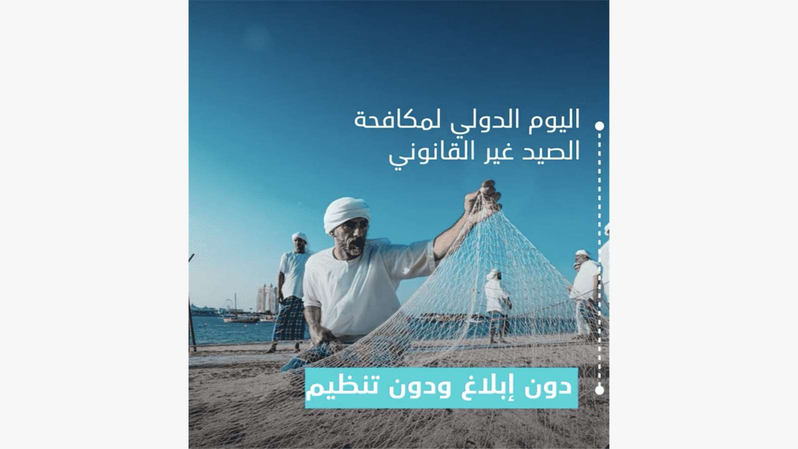 وتماشياً مع اليوم الدولي لمكافحة الصيد غير القانوني دون إبلاغ ودون تنظيم تلتزم دولة الإمارات بتنظيم الصيد على نحو فعال، وإنهاء الصيد المفرط، وغير القانوني، وغير المبلغ عنه، وغير المنظم، وممارسات الصيد الخاطئة، وذلك عبر عدة تشريعات تحدد وتنظم مواصفات معدات الصيد، منع الصيد في المناطق المحظورة، منع صيد بعض انواع الأسماك، وكذلك منع صيد بعض أنواع الأسماك خلال موسم التكاثر.