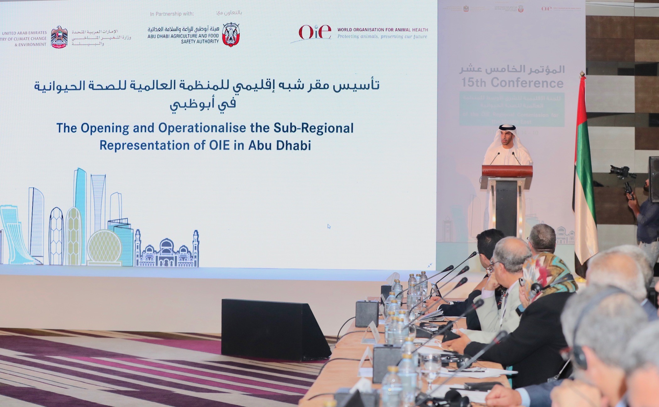 أفتتح معالي الدكتور ثاني بن أحمد الزيودي وزير التغير المناخي والبيئة فعاليات الدورة الـ 15 من مؤتمر اللجنة الإقليمية للمنظمة العالمية للصحة الحيوانية لمنطقة الشرق الأوسط، والذي تستضيفه العاصمة أبوظبي في الفترة من 10 إلى 14 نوفمبر الجاري.