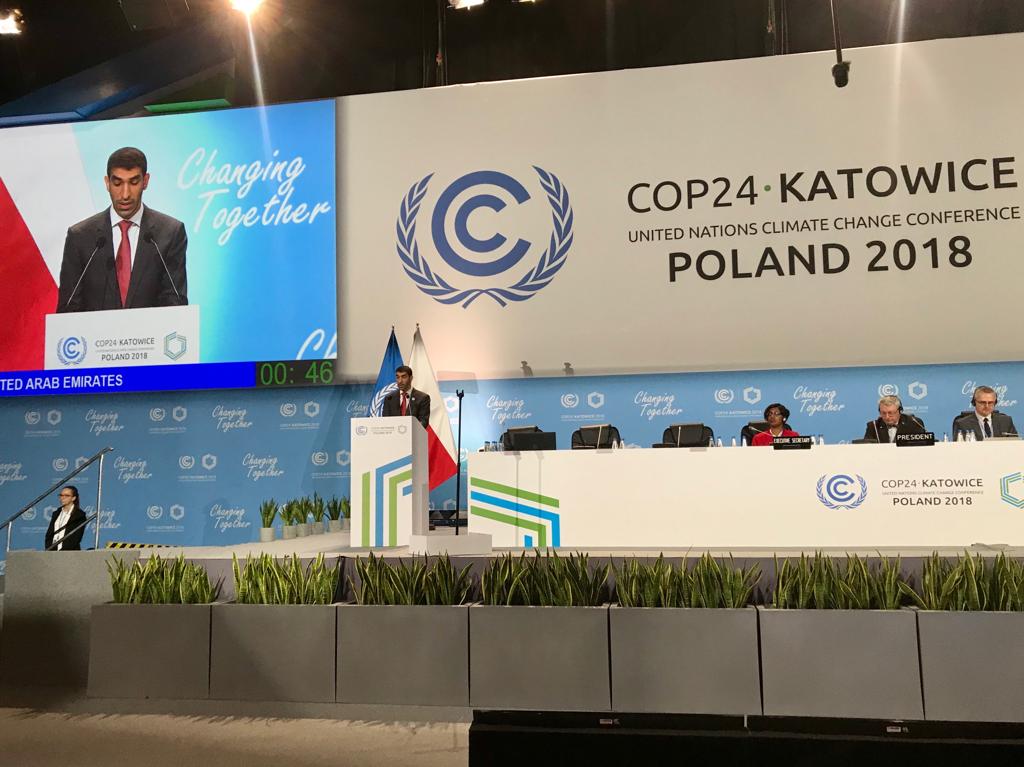 استعرض تجربة الإمارات الناجحة في الحد من تداعيات التغير المناخي والتكيف معها الزيودي يشدد على ضرورة تسريع الجهود الدولية لتحقيق بنود اتفاق باريس وأهداف التنمية المستدامة خلال المشاركة في "كوب 24"