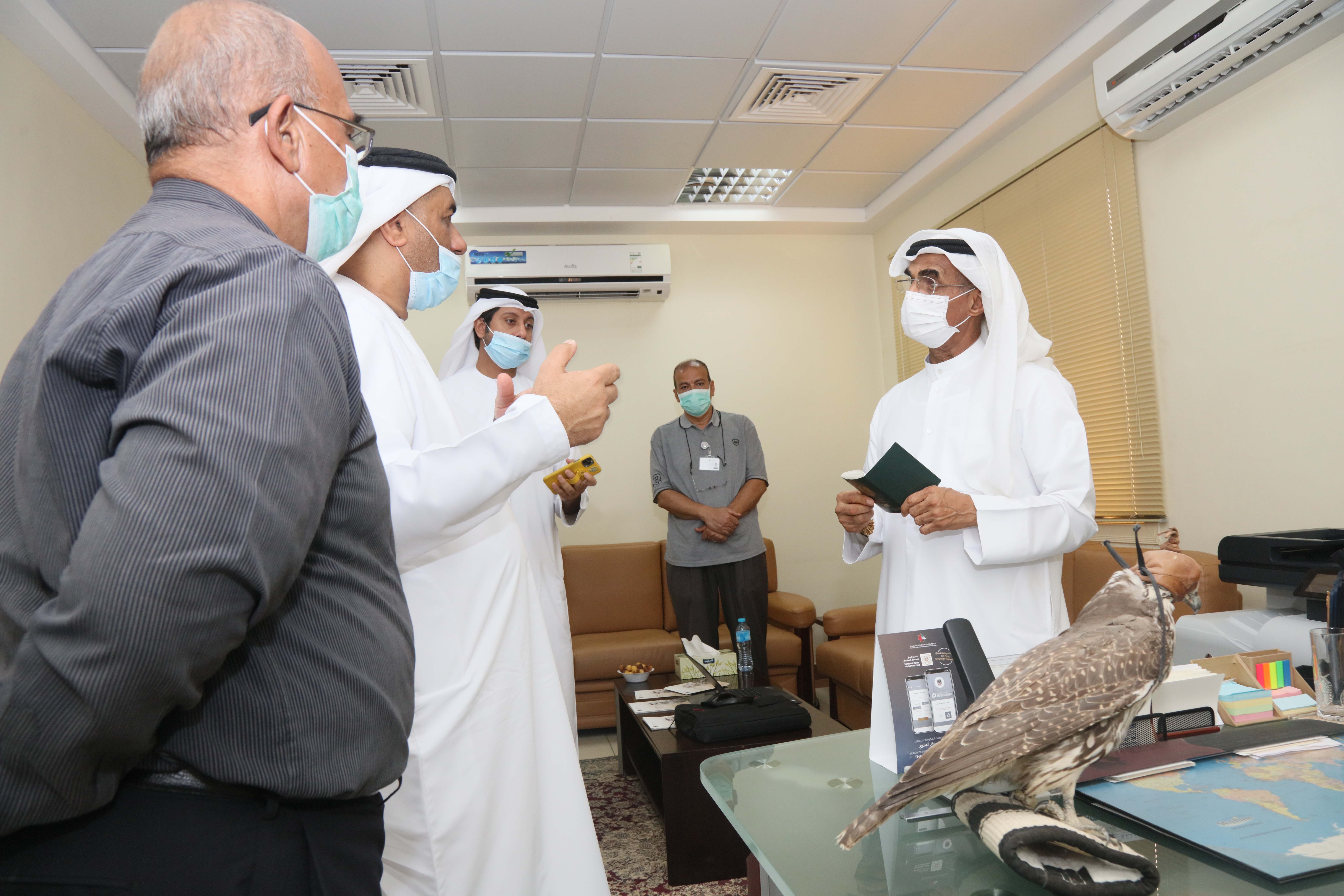 وخلال جولته الميدانية زار معالي الدكتور بلحيف النعيمي مركز العوير للصقور للتأكيد على جودة ومرونة الخدمات التي يقدمها لمربي ومالكي الصقور، وخدمات الارشاد الزراعي والبيطري التي تقدم لقطاعي الزراعة والثروة الحيوانية