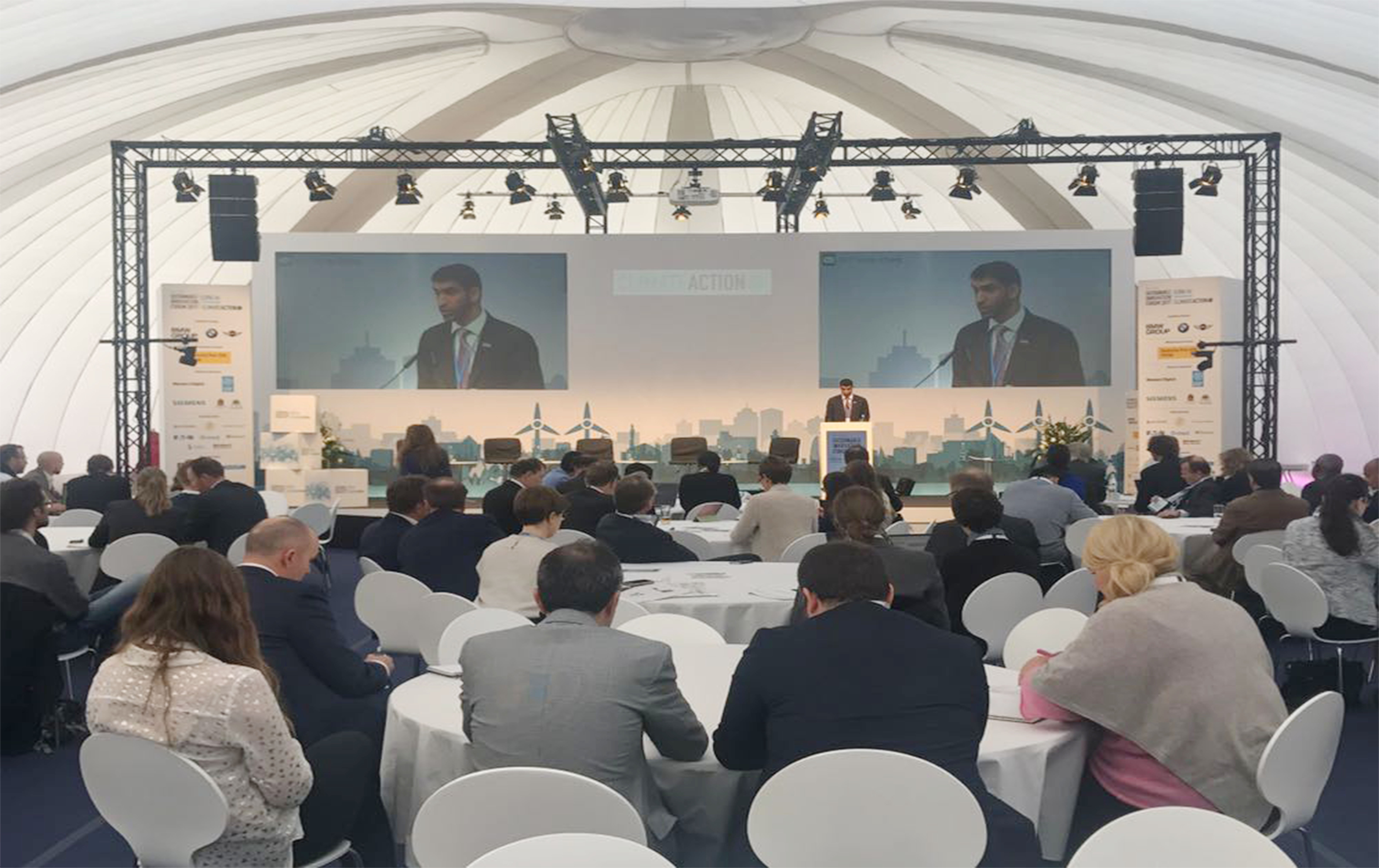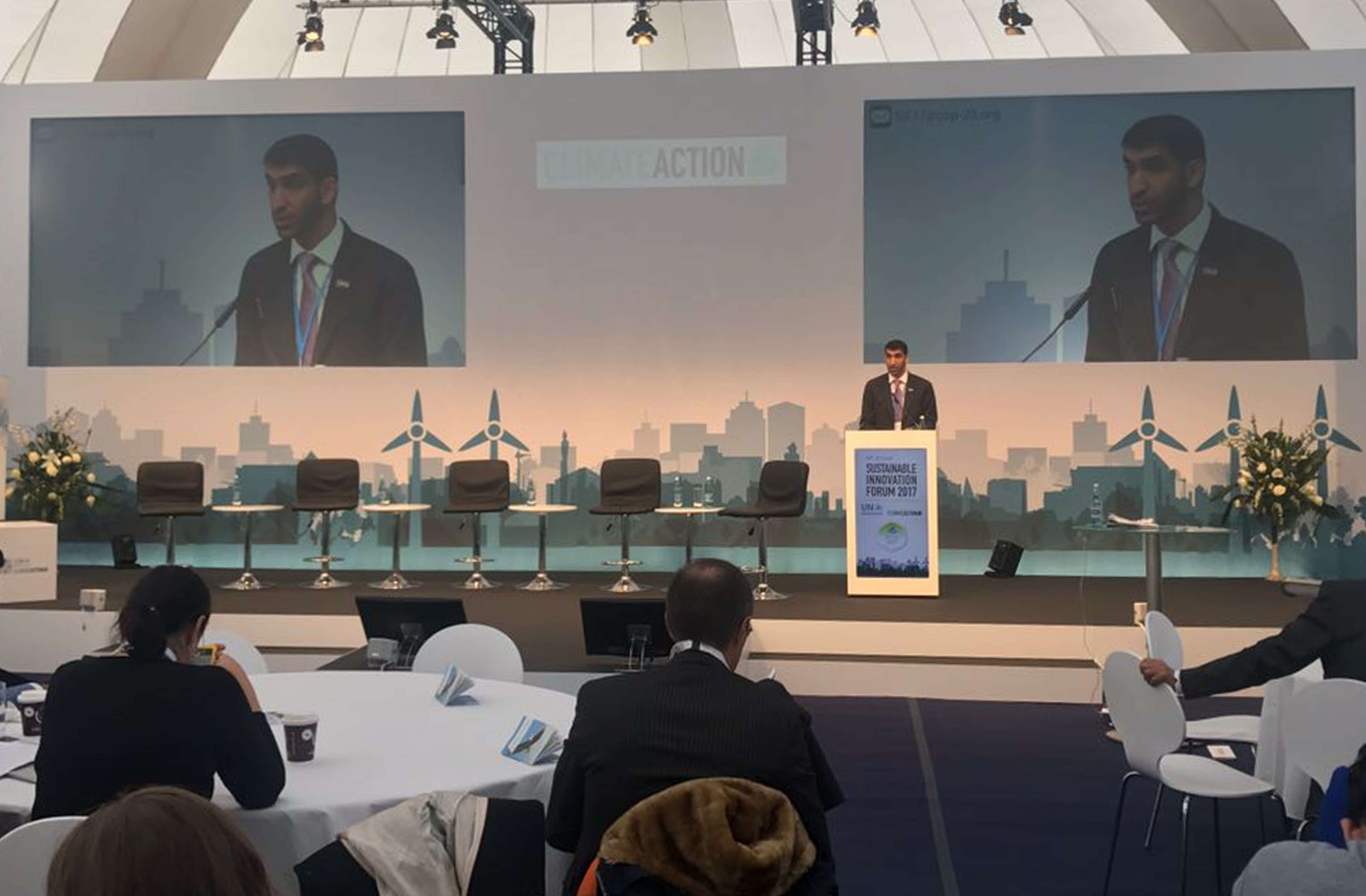وتابع معاليه: "وفي ضوء هذه الأوضاع المقلقة، فإننا مطالبون اليوم بتسريع وتيرة العمل للمحافظة على الزخم الذي وفره اتفاق باريس، وتوجيه رسالة إيجابية من مدينة بون الألمانية إلى شعوب العالم لنؤكد من خلالها عزمنا على المُضي قُدُماً في ترجمة أهداف هذا الاتفاق التاريخي إلى تدابير وإجراءات عملية قابلة للتطبيق وصياغة المستقبل الذي نصبو إليه."