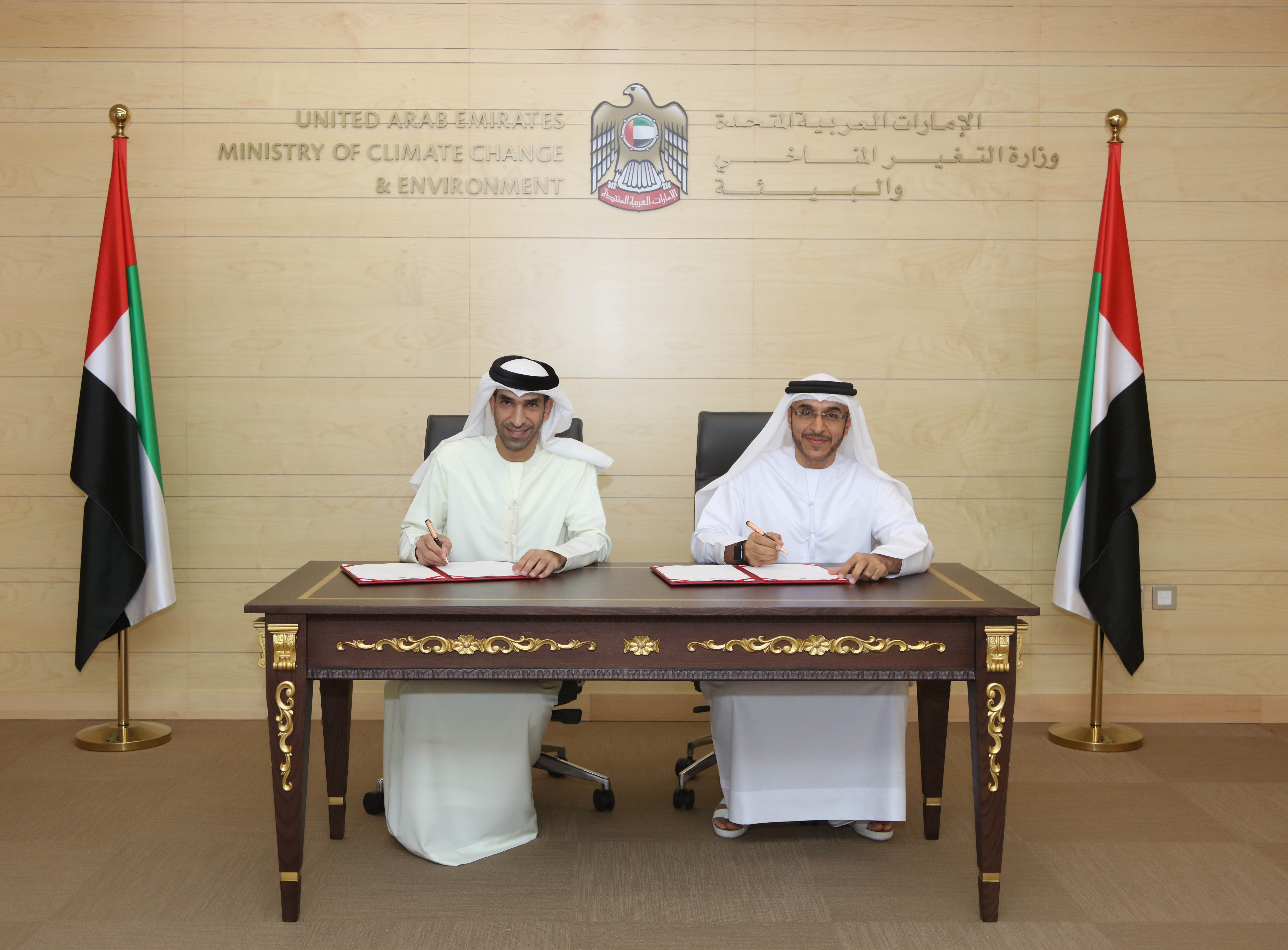 وقع المذكرة معالي الدكتور ثاني بن أحمد الزيودي، وزير التغير المناخي والبيئة، وسعادة ثابت سالم عبيد الطريفي، نائب رئيس مجلس الإدارة بشركة الشارقة للبيئة في مقر الوزارة بدبي.