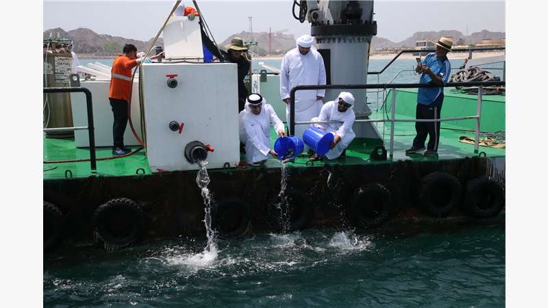 معالي الدكتور ثاني بن أحمد الزيودي، وزير التغير المناخي والبيئة، يدشّن مبادرة طرح عدد من أسماك شعم والقابض من الأحجام الكبيرة (150 غرام) في مياه المحميات البحرية بالدولة، والتي بدأت في دبا الفجيرة صباح اليوم، وستتبعها سلسلة من عمليات طرح الأسماك تقوم الوزارة بتنفيذها بالتعاون مع مزرعة "فيش فارم" بواقع 30 ألف سمكة في مياه المحميات البحرية بكل إمارة من الإمارات السبع.