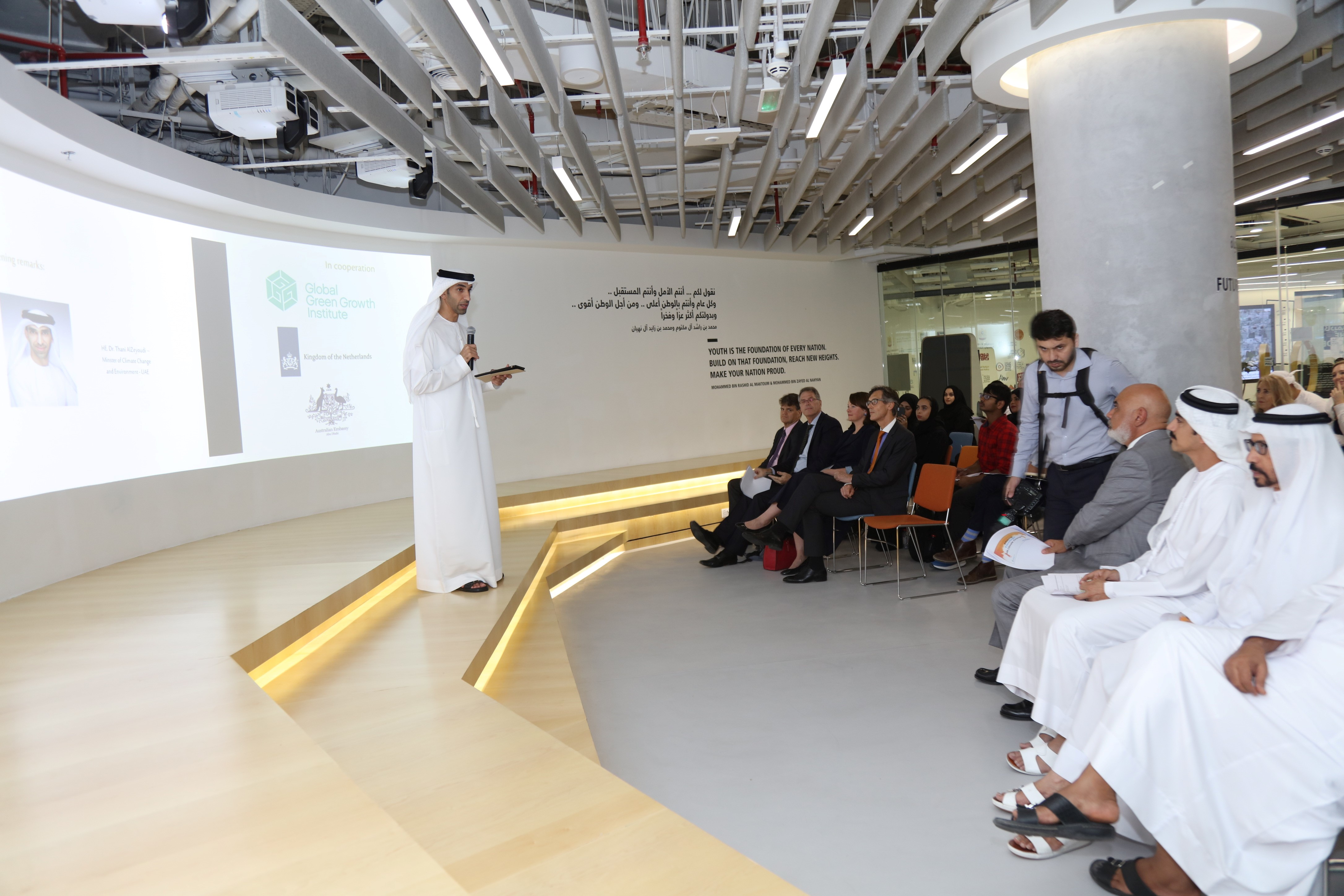 تزامناً مع اليوم العالمي للأغذية 16 أكتوبر، نظمت وزارة التغير المناخي والبيئة ورشة عمل للشباب بعنوان "غذاؤنا مستقبلنا" بالتعاون مع المعهد العالمي للنمو الأخضر وسفارتي أستراليا وهولندا في الإمارات. وركزت ورشة العمل على إشراك الشباب في جهود تطوير السياسات الحكومية المتعلقة بإدارة الأغذية، وشكلت الورشة منصة غير رسمية لتعزيز العلاقة مع ممثلي القطاع الأكاديمي والفكري والحكومي والخاص بالإضافة على الطلبة والخريجين الإماراتيين والأستراليين والهولنديين.