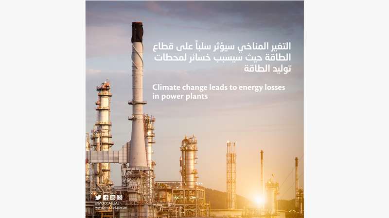 وحدد التقييم الذي شمل مجموعة من الدراسات وورش العمل وتحليلات للوضع القائم في الدولة نظمتها الوزارة حول آليات التكيف مع التغير المناخي وأهميته في القطاعات الرئيسية للمجتمع، التأثير الأهم للتغير المناخي على قطاع الطاقة في دولة الإمارات، بانخفاض كفاءة محطات انتاج الطاقة وارتفاع نسب خسائرها وزيادة تكلفة عمليات إنتاج الطاقة وبالأخص عندما ترتفع درجات الحرارة العالمية بسبب تداعيات التغير المناخي.