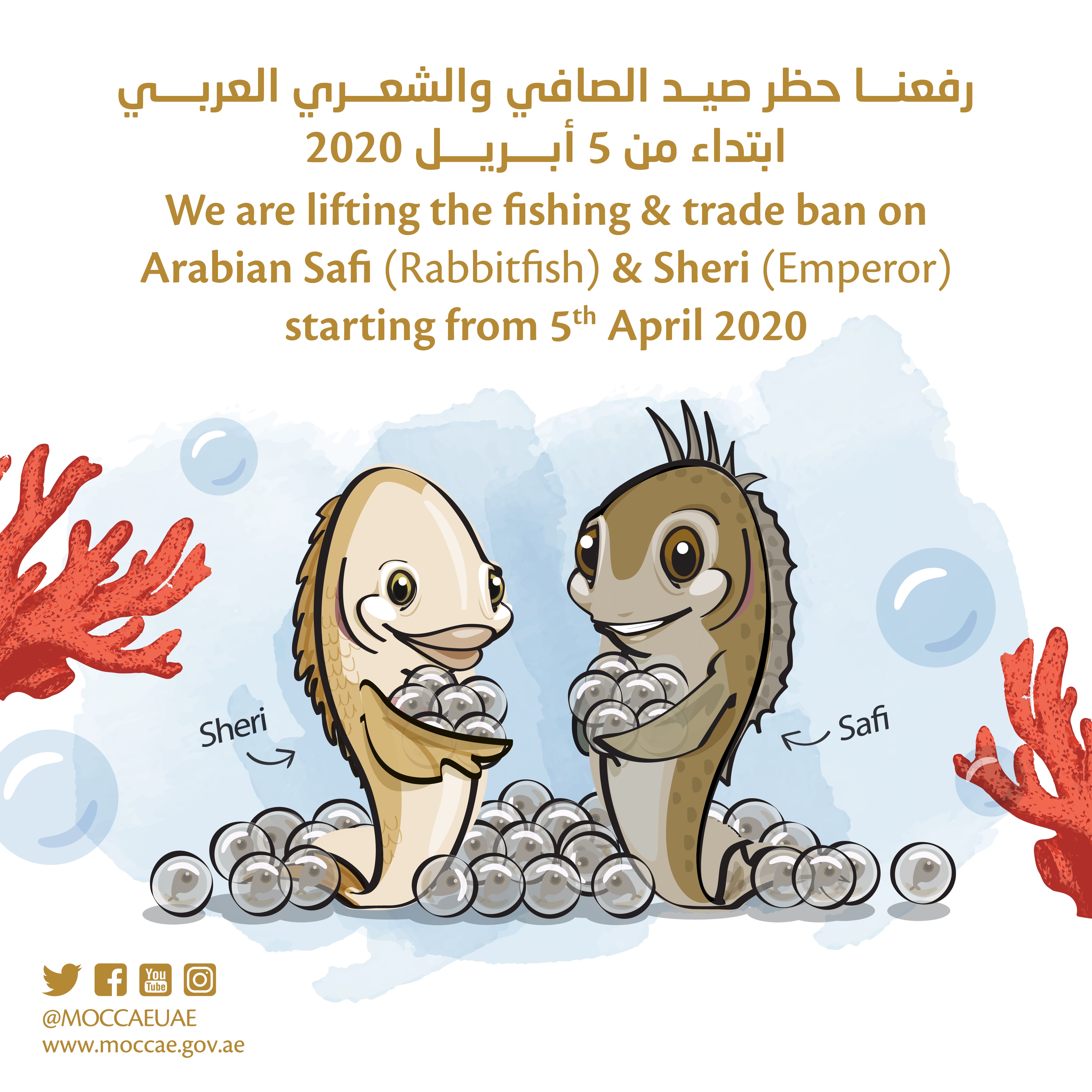تعزيزاً لتوافر السلع الغذائية في السوق المحلي، ودعما لاستدامة قطاع الصيد والعاملين به، قررت وزارة التغير المناخي والبيئة بداية من الأحد المقبل، إيقاف العمل بالقرار رقم (501 ) لعام 2015 بشأن تنظيم صيد أسماك الشعري والصافي العربي للفترة المتبقية من الموسم الحالي لتكاثر هذه الأنواع من الأسماك والتي تمتد حتى نهاية أبريل الجاري، والسماح بصيدها على مستوى الدولة خلال هذه الفترة.