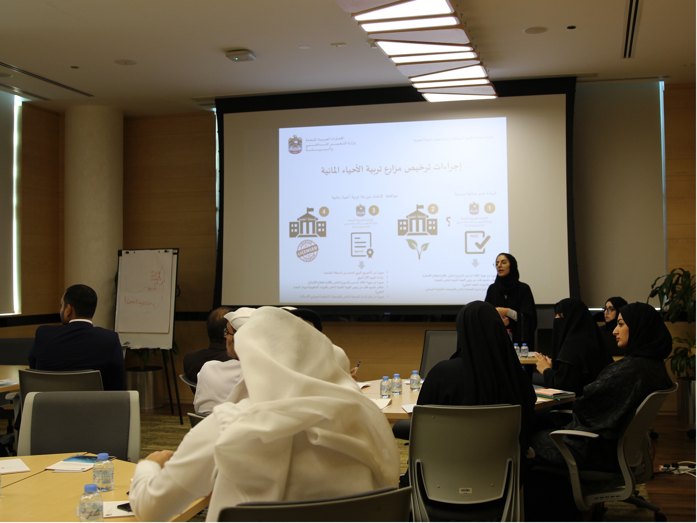 نظمت وزارة التغير المناخي والبيئة في ديوانها في دبي ورشة عمل تعريفية للجهات والمؤسسات الحكومية المحلية ذات العلاقة بقطاع الثروات المائية الحية، حول تعديلات القانون الاتحادي رقم (7) لسنة 2016 في شأن استغلال وحماية وتنمية الثروات المائية الحية وصدور اللائحة التنفيذية له.