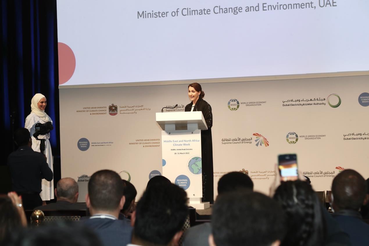 أفسحت معالي مريم بنت محمد المهيري وزيرة التغير المناخي والبيئة المجال لإعطاء الكلمة الختامية في أسبوع المناخ في الشرق الأوسط وشمال إفريقيا لرئيسة مجلس الشباب العربي للتغير المناخي للتعبير عن رأي الشباب ورؤيته لاحتياجات ومتطلبات مواجهة تحدي التغير المناخي وضمان إيجاد مستقبل مستدام في المنطقة.