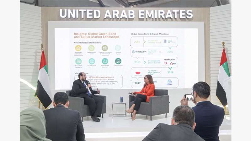 ضمن مشاركتها في أعمال مؤتمر دول الأطراف COP27 المقام في مدينة شرم الشيخ المصرية، نظمت وزارة التغير المناخي والبيئة جلسة حوارية بالتعاون مع المعهد العالمي للنمو الأخضر "GGGI" حول برنامج السندات والصكوك الخضراء الإماراتي، أعلنت خلالها عن التقييم الجديد لسوق هذا النوع من الأوراق المالية الداعمة لتحقيق الاستدامة.