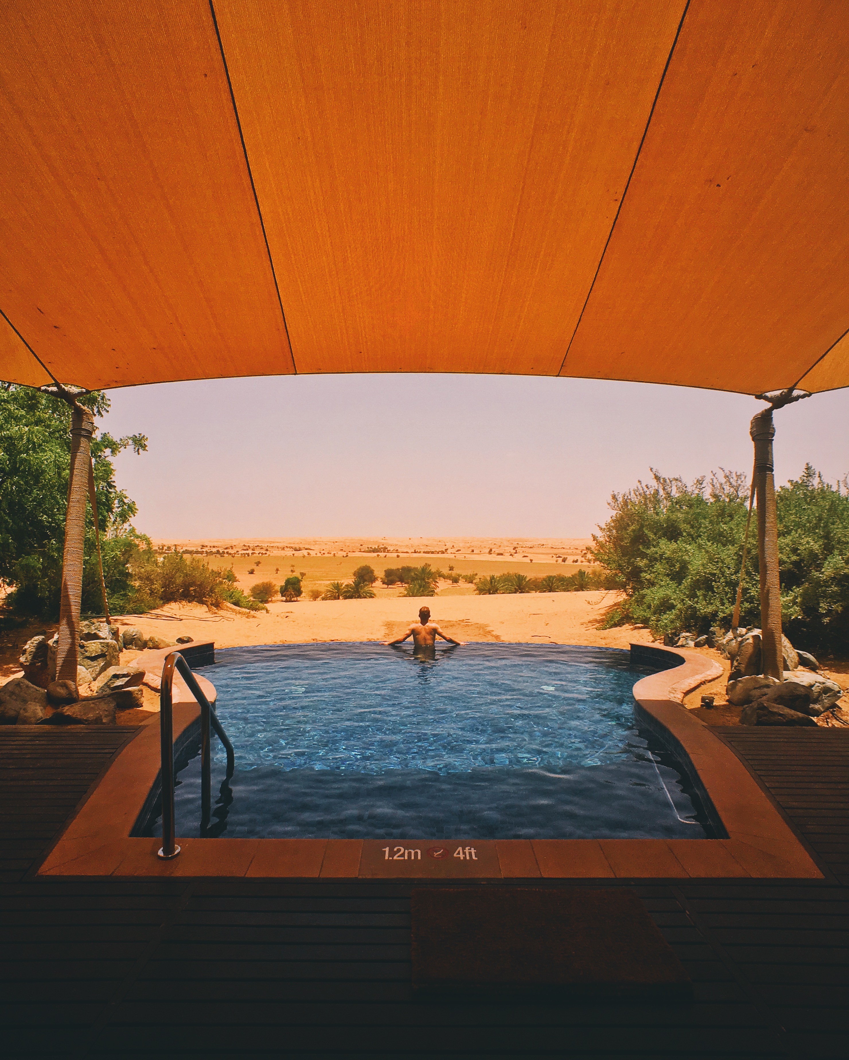 Al Maha Desert Resort & Spa is nestled within the Dubai Desert Conservation Reserve protected area. Providing an escape from urban bustle, visitors can partake in a range of activities such as nature walks, camel treks, horse riding, and desert safaris.