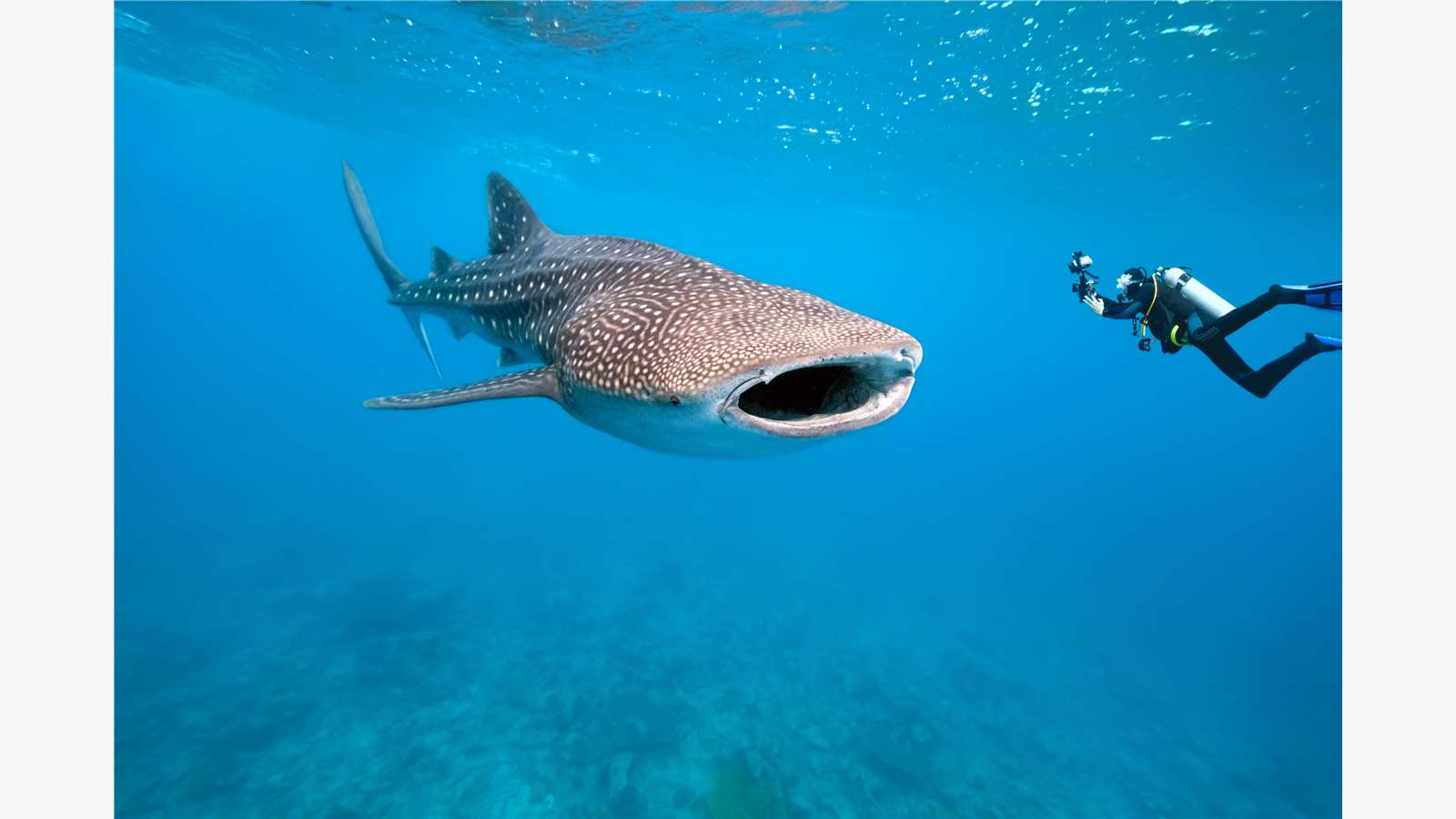 A #WhaleShark is considered to be a peaceful species despite its huge size, it doesn’t pose a threat to humans, divers and or swimmers, in addition to feeding of #algae, #plankton, larvae and small squid