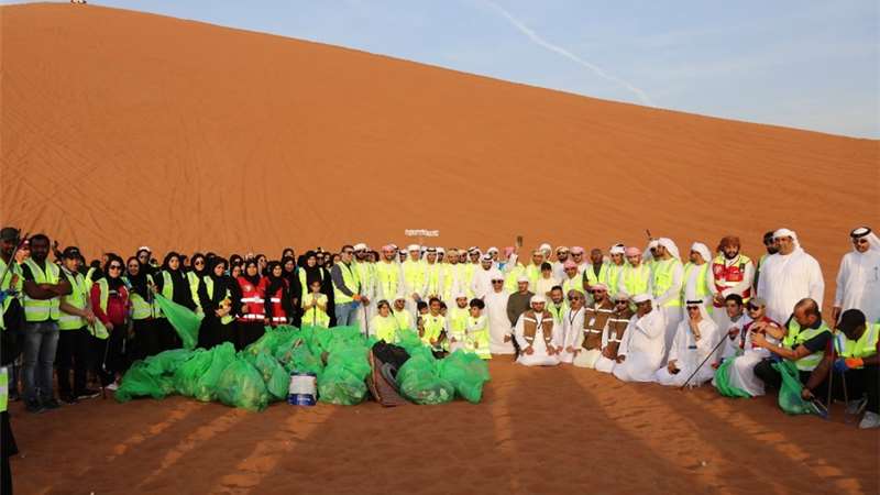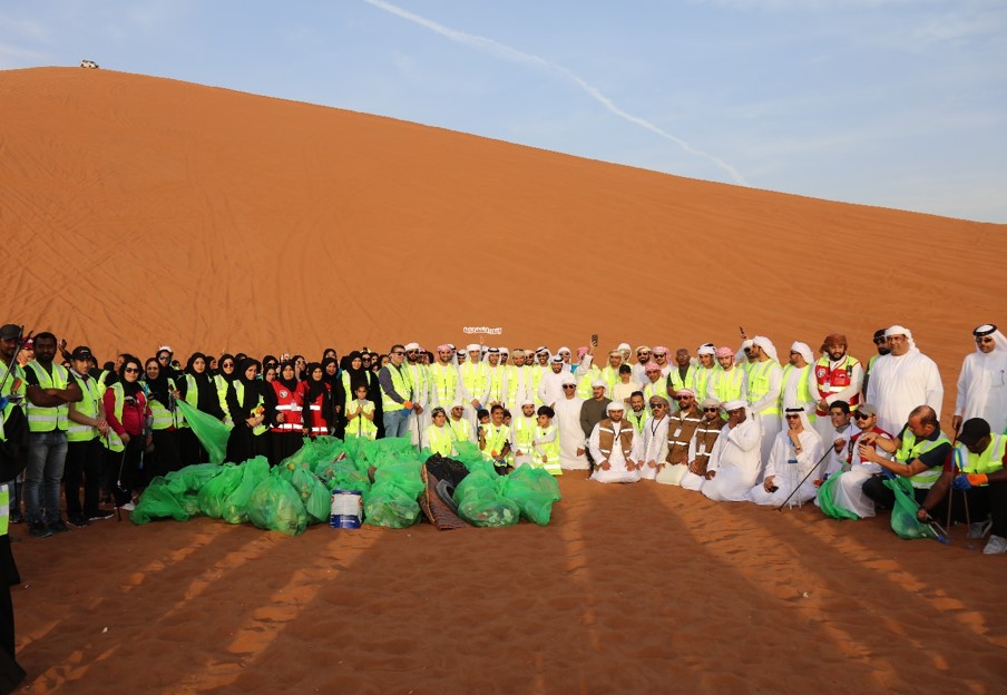 with participation of Sheikh Sultan bin Ahmed Al Qasimi, HE Dr. Thani Al Zeyoudi, Minister of Climate Change and Environment, local authorities, media, MOCCAE employees and over 200 volunteers. Clean-Up Campaign at Al Fayah area in Sharjah