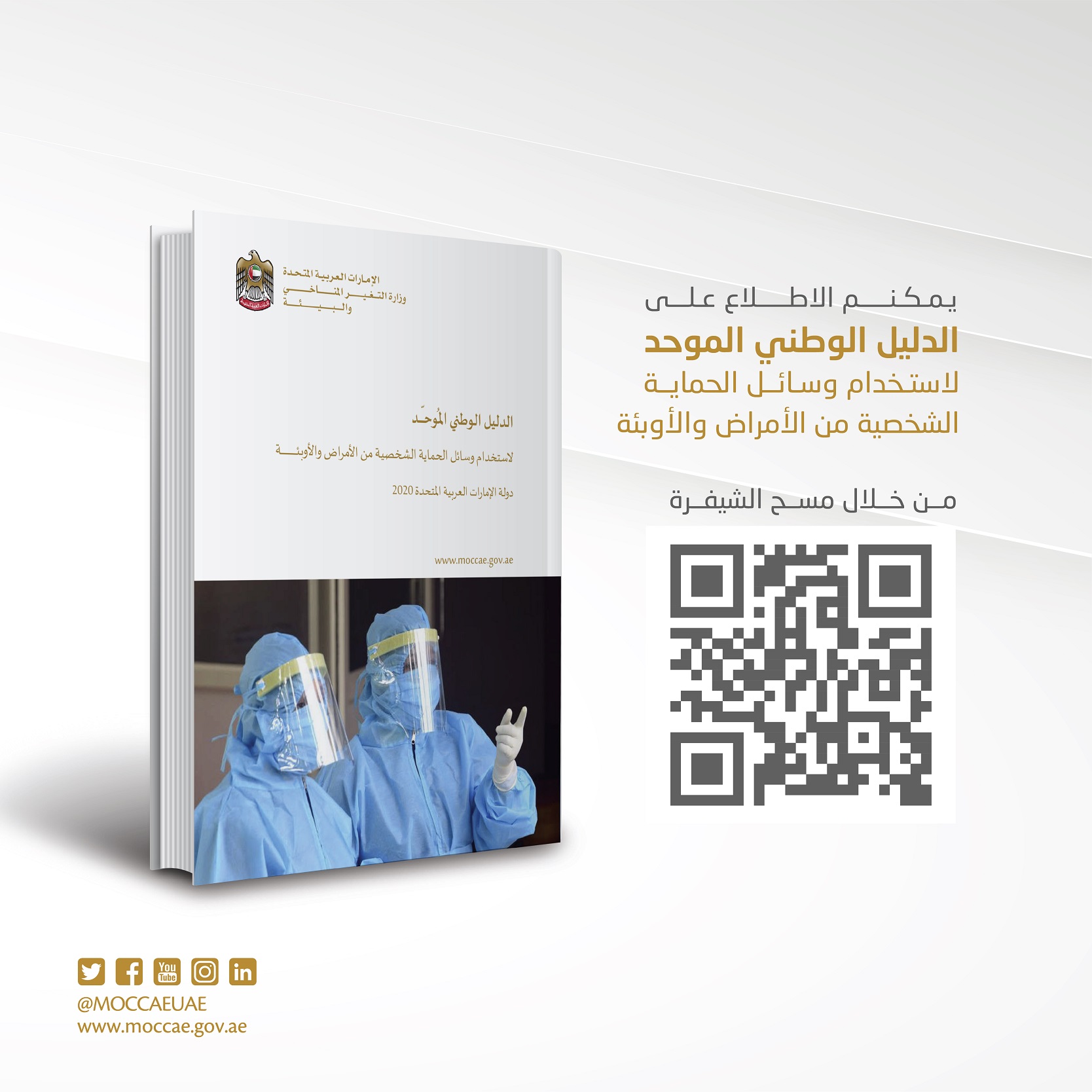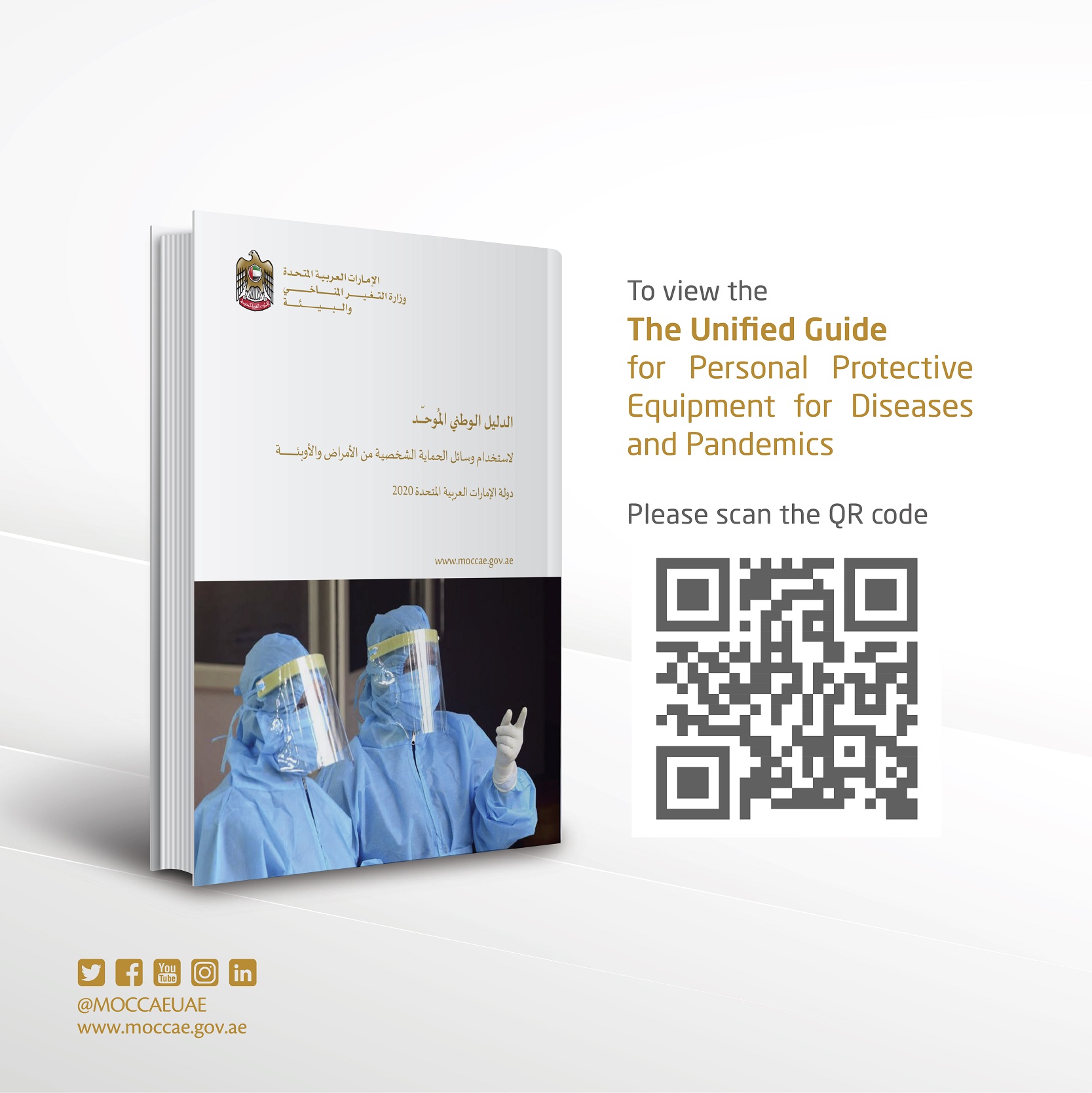 The National Biosecurity Committee, headed by the Ministry of Climate Change and Environment (MOCCAE), has released the Unified National Guide for Personal Protective Equipment for Diseases and Pandemics as a reference on the proper use of protective masks and clothing. The Committee developed the publication in cooperation with the Ministry of Health and Prevention, the Dubai Health Authority (DHA), and the Department of Health – Abu Dhabi (DoH).