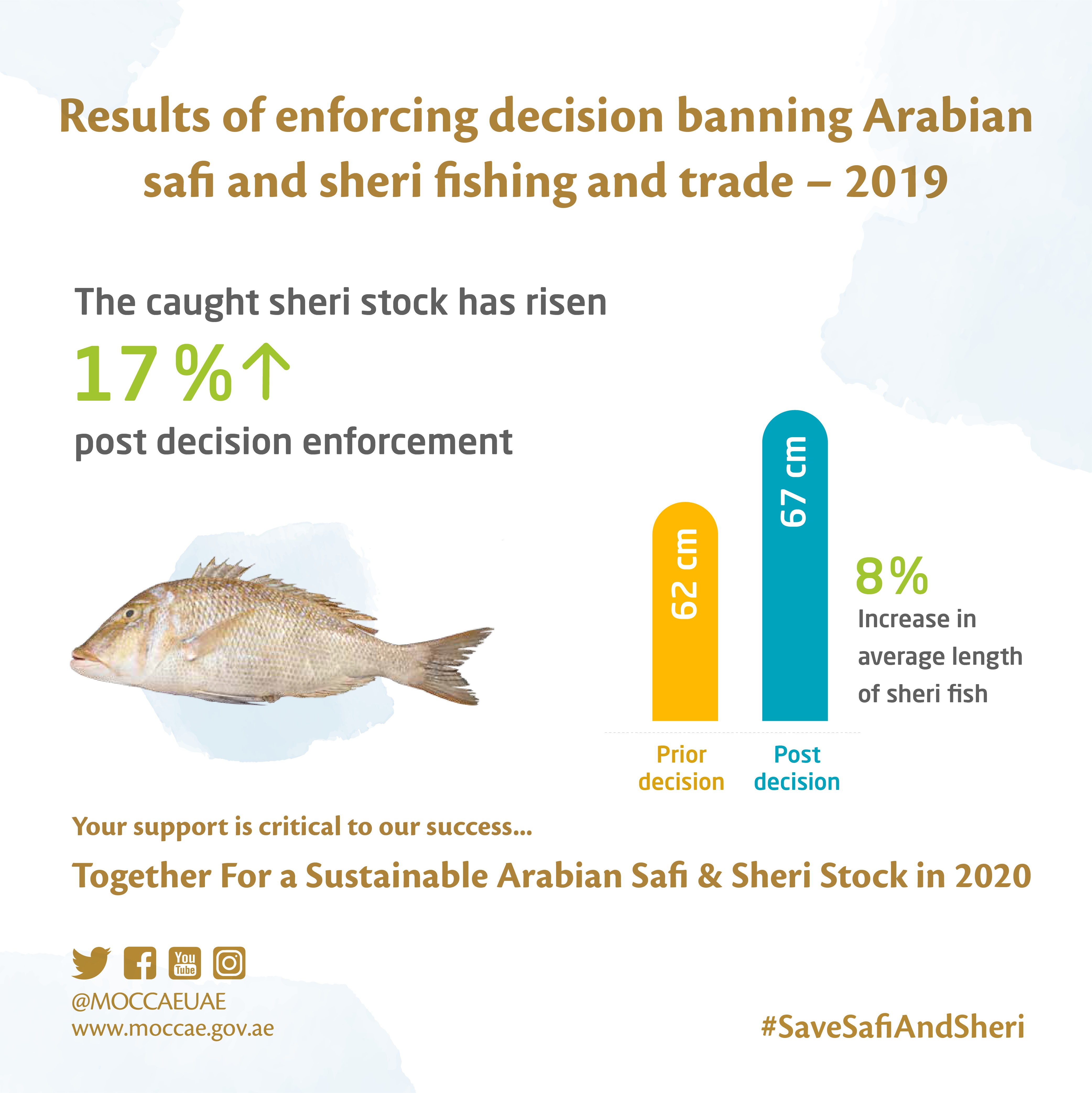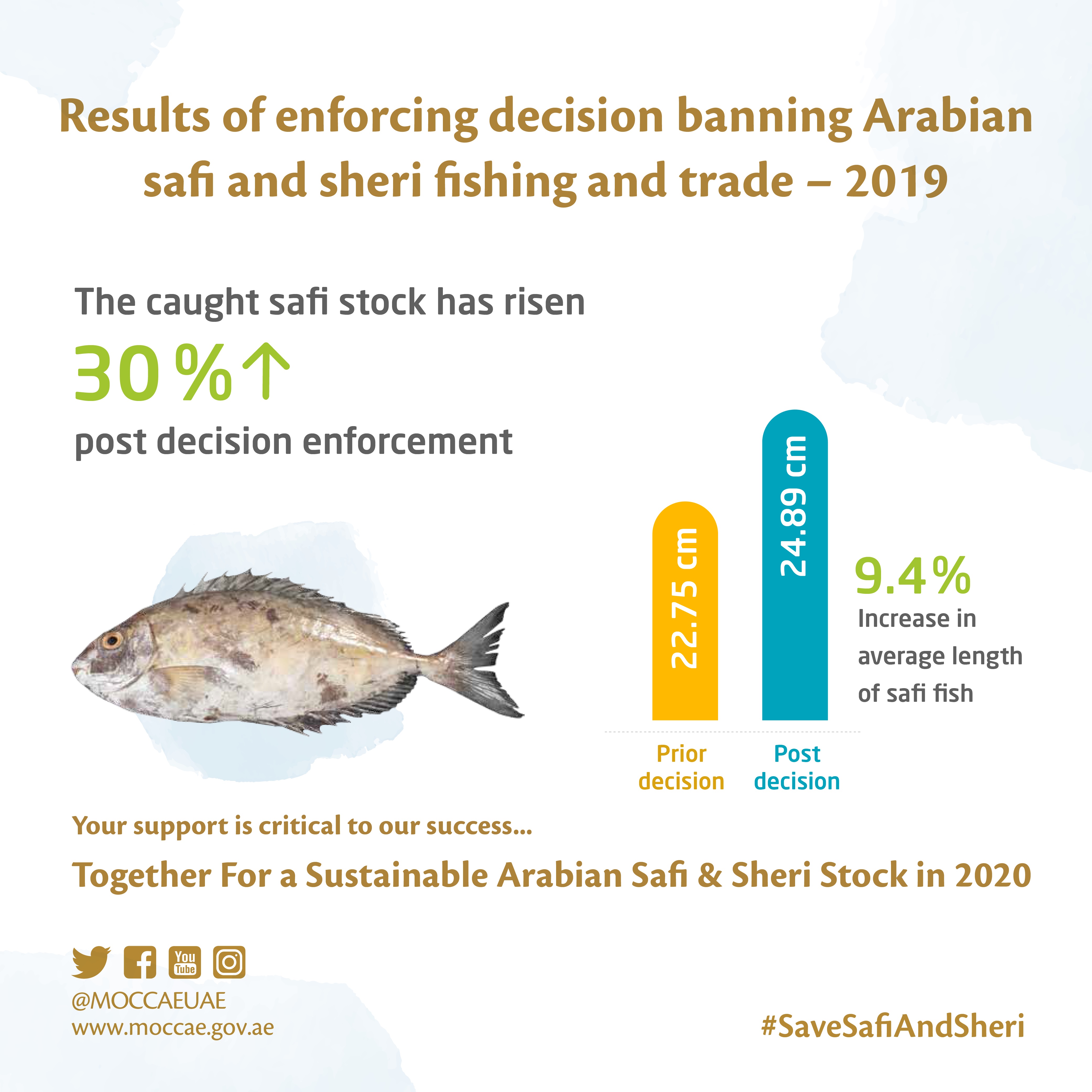 The Ministry of Climate Change and Environment (MOCCAE) today announced that as a result of the annual fishing and trade ban on Arabian safi (rabbitfish) and sheri (emperor), surveys of fishermen’s catch at landing sites indicate that the populations of the two species are flourishing.