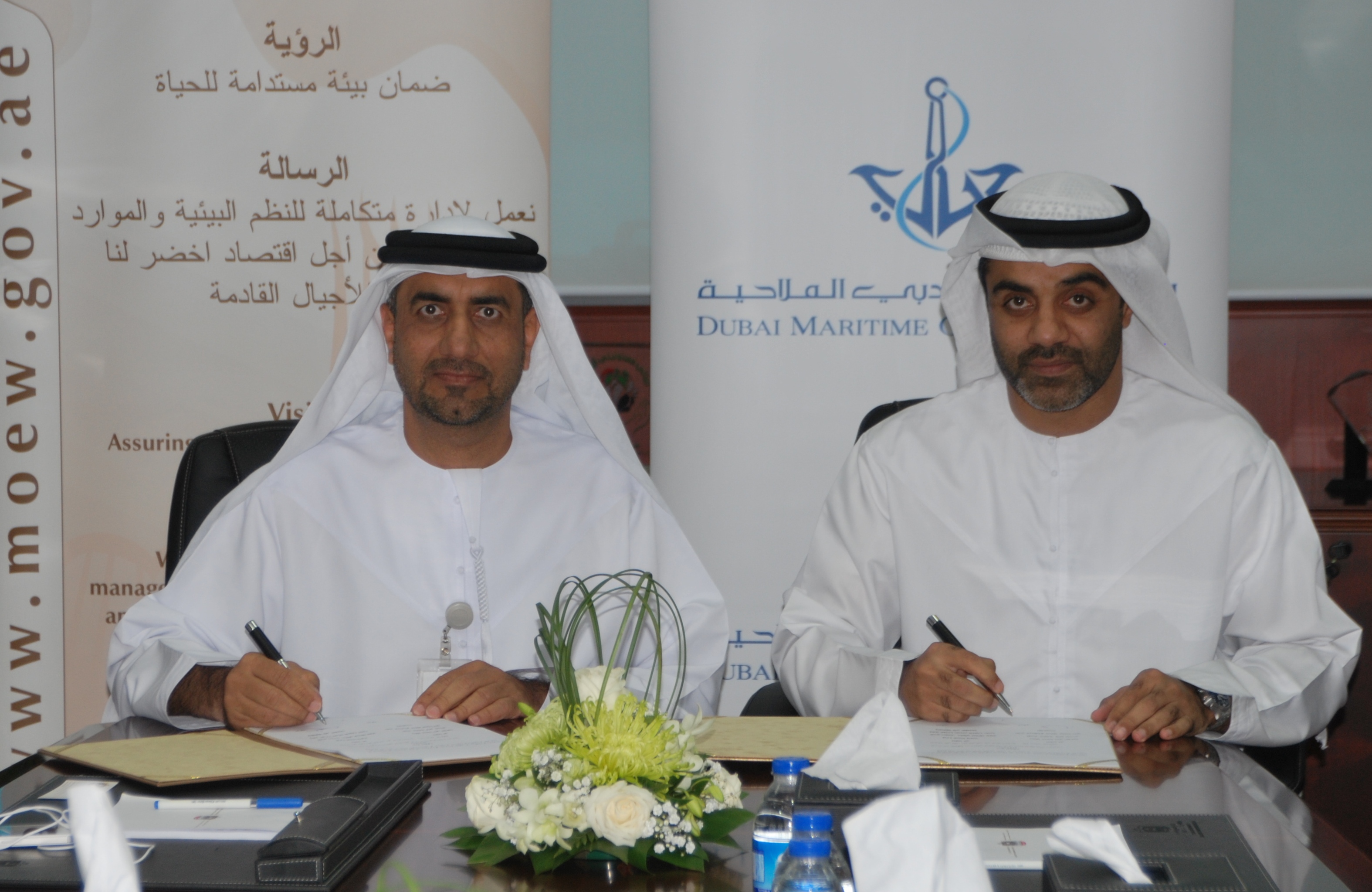 Therefore, for the sake of cooperation in the field of marine environment, the Ministry signed a memorandum of understanding with Dubai Maritime City Authority at the Ministry’s Headquarters in Dubai on Monday, September 10th, 2012. The MoU was signed by H.E. Sultan Alwan on behalf of the Ministry, and by H.E. Amer Ali, CEO of Dubai Maritime City Authority.