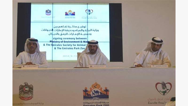 The Ministry of Environment and Water has signed a Memorandum of Understanding with the Emirates Society for Animal Welfare (ESAW) and the Emirates Park Zoo to pave the way for joint projects aimed at raising public awareness on animal welfare. The MoU signing happened during the ministry’s participation at ADIHEX 2014, which took place from Wednesday 10th - Saturday 13th, September 2014. This move complements the ministry’s intensified efforts to defend and preserve animal rights as well as promote their humane treatment through awareness campaigns. Part of the ministry’s initiatives is to inform the public about laws governing animal welfare in the UAE, which falls is in line with the ministry’s directives to heighten environment protection awareness in order to promote sustainability.