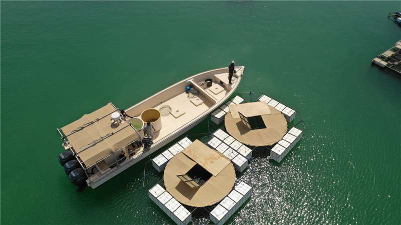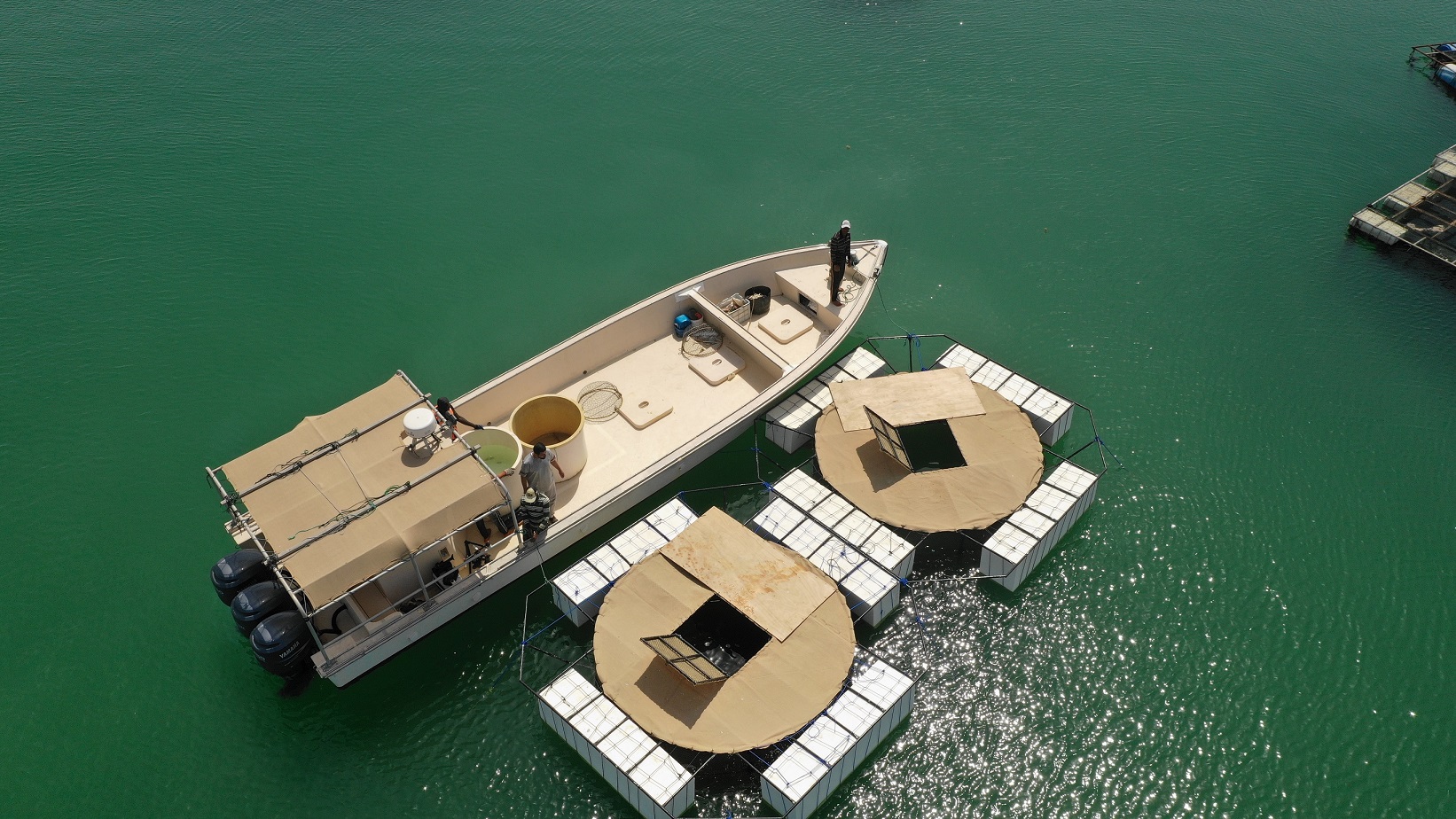 During the pilot phase, MOCCAE installed two cylinder-shaped metal cages (3m x 3.6m) holding nearly 300 sheri (emperor) fish and a smaller number of other species in Umm Al Quwain Creek.