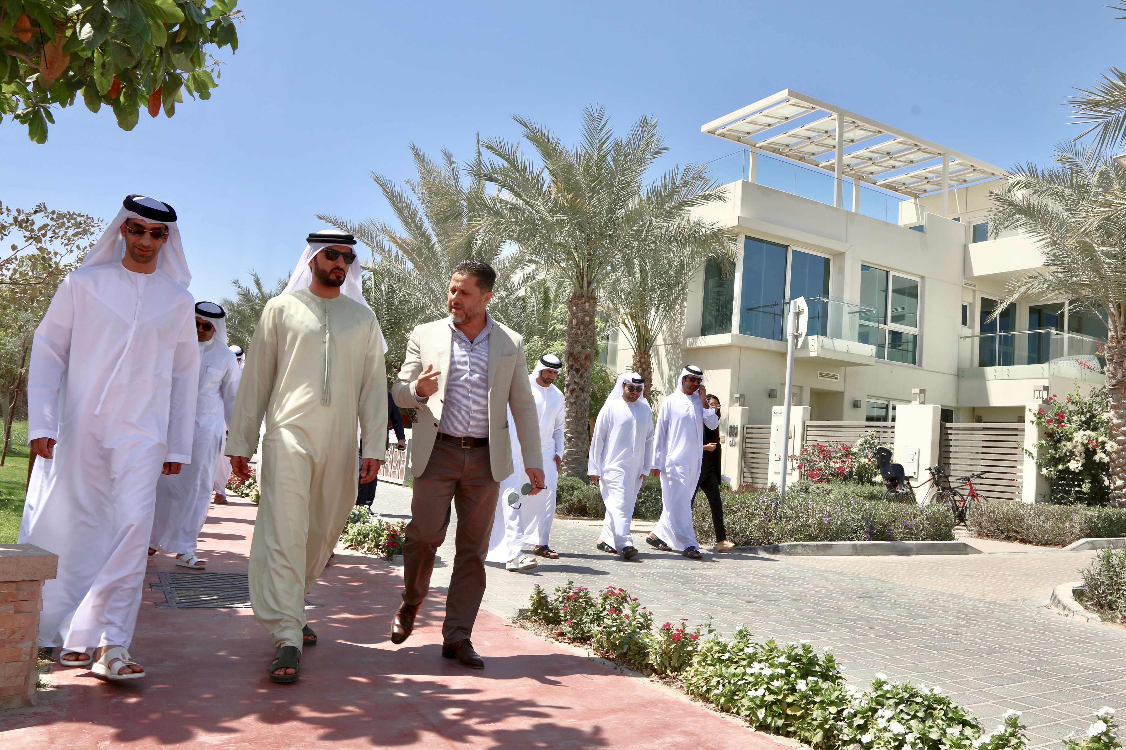 His Highness Sheikh Rashid bin Humaid Al Nuaimi, Chairman of the Ajman Municipality and Planning Department, and His Excellency Dr Thani bin Ahmed Al Zeyoudi, Minister of Climate Change and Environment, toured the Sustainable City in Dubai to learn about latest green practices in the City’s sustainable residential, work, educational, and recreational buildings and facilities.