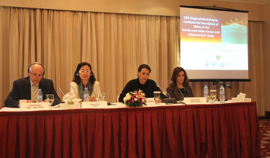 The Ministry of Environment and Water hosted a regional workshop on Ecologically or Biologically Significant Marine Areas (EBSA) in the North-Western Indian Ocean and the neighboring Gulf region in cooperation with the Convention on Biological Diversity (CBD) in , the Regional Office for Western Asia of the United Nations Environment Programme, the Office of Conservation of Migratory Species of Wild Animals - Abu Dhabi, the Regional Organization for the Conservation of the Environment of the Red Sea and Gulf of Aden, the Regional Organization for the Protection of the Marine Environment and the Abu Dhabi Global Environmental Data Initiative (AGEDI) which aimed to identify important marine areas in the region. The workshop was attended by representatives from the UAE, Kuwait, Oman, Qatar, Saudi Arabia, the Kingdom of Bahrain, Iraq, Iran, Egypt and Jordan, Djibouti, Somalia, Sudan, Yemen, Eritrea, Pakistan, India and Maldives and many other international and regional organaizations. The workshop will held on April 19 to 25, 2015 , at the City Season suites Hotel. The move to host the workshop comes as part of the UAE’s commitment to encouraging international environmental conventions that are aimed at conserving biodiversity and promoting environmental sustainability.