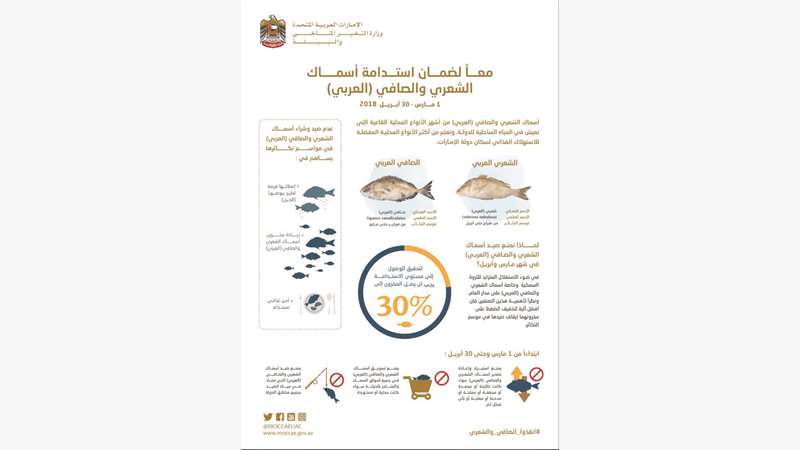 The Ministry of Climate Change and Environment (MOCCAE) has commenced the implementation of the Ministerial Decision No 501 of 2015 regulating the fishing and trading of Arabian Sheri (emperor fish) and Safi (rabbitfish) during the breeding period starting from 1st March to 30th April 2018.