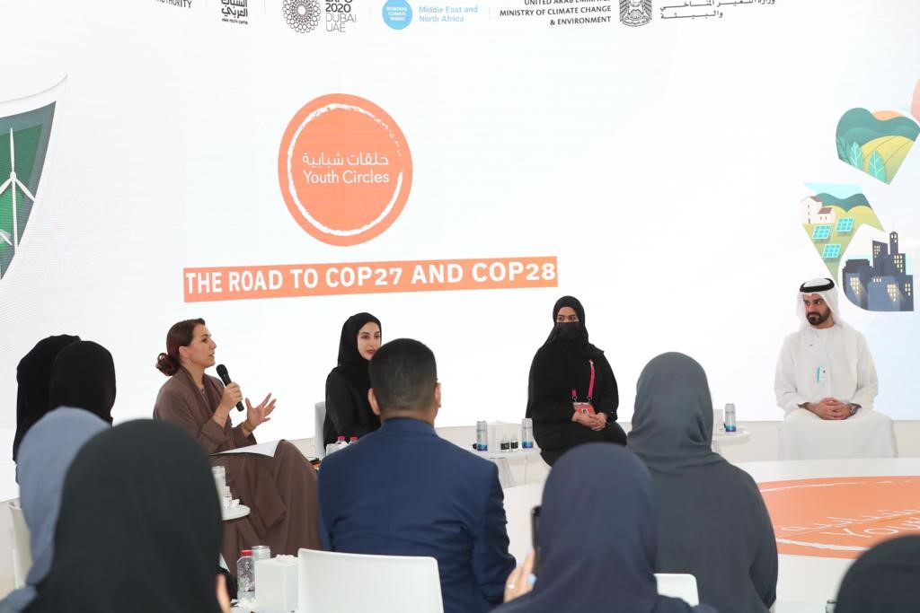 On the sidelines of the first-ever Middle East and North Africa Climate Week 2022, the Ministry of Climate Change and Environment (MOCCAE), the Federal Youth Authority, and the Arab Youth Council for Climate Change (AYCCC) organized a youth circle entitled ‘The Road to COP27 and COP28’. With the aim of promoting youth empowerment and engagement in climate action and shaping the future of the region, the session brought together Her Excellency Mariam bint Mohammed Almheiri, Minister of Climate Change and Environment, Her Excellency Shamma Al Mazrui, Minister of State for Youth Affairs, and Her Excellency Dr Yasmine Fouad, Minister of Environment of Egypt.