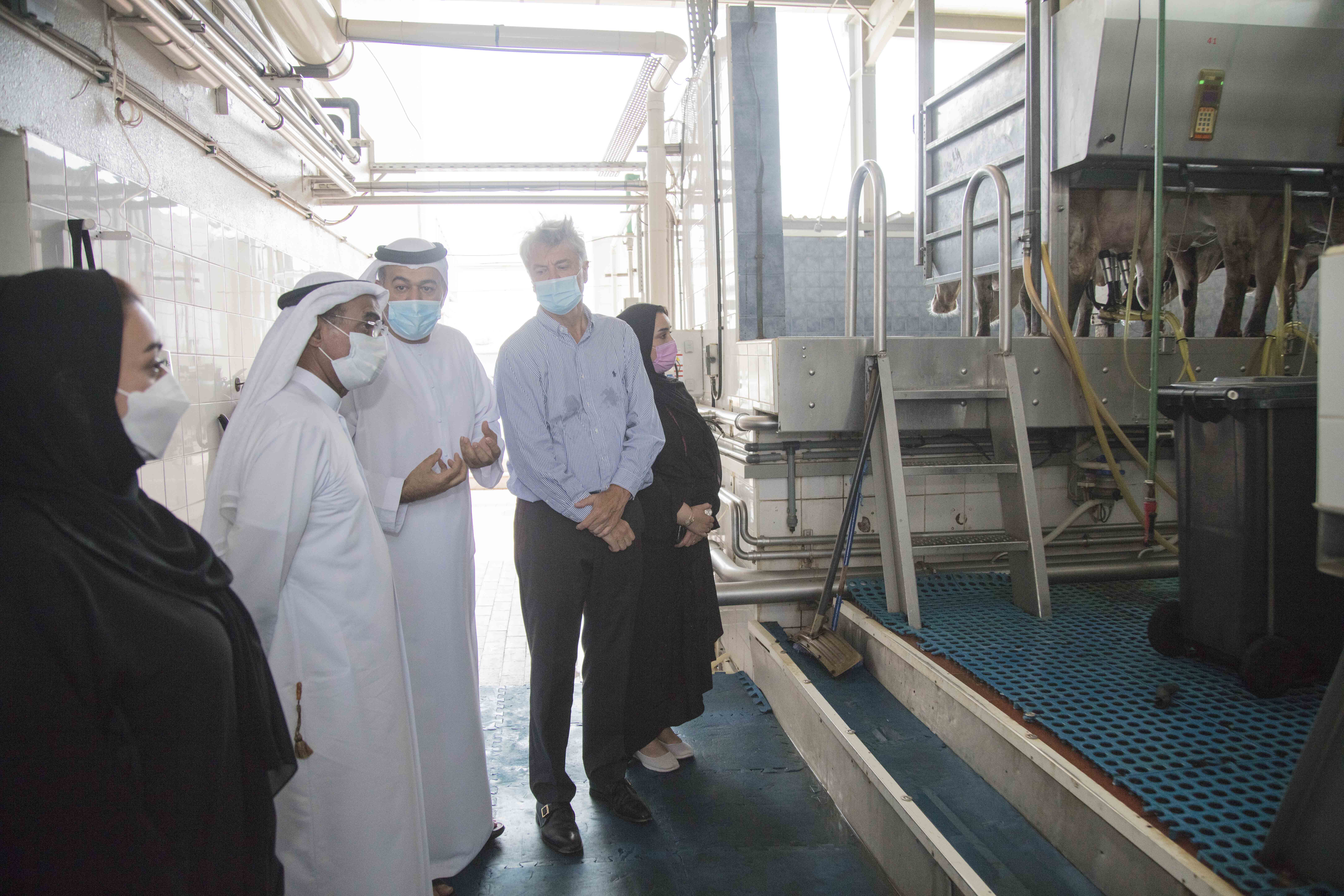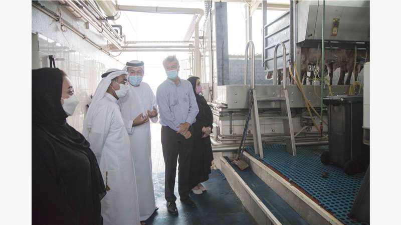 His Excellency Dr Al Nuaimi explored the facilities of the first dairy farm in the UAE, and the innovative technologies used in raising livestock and the manufacturing and processing of dairy products.