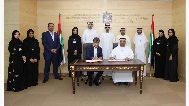 His Excellency Sultan Alwan Al Habsi, Assistant Undersecretary for the Regions Sector at MOCCAE, and Abdul Baqi Talif, Chairman of ETHPE Contracting, signed the contract in the presence of His Excellency Dr Thani bin Ahmed Al Zeyoudi, Minister of Climate Change and Environment.