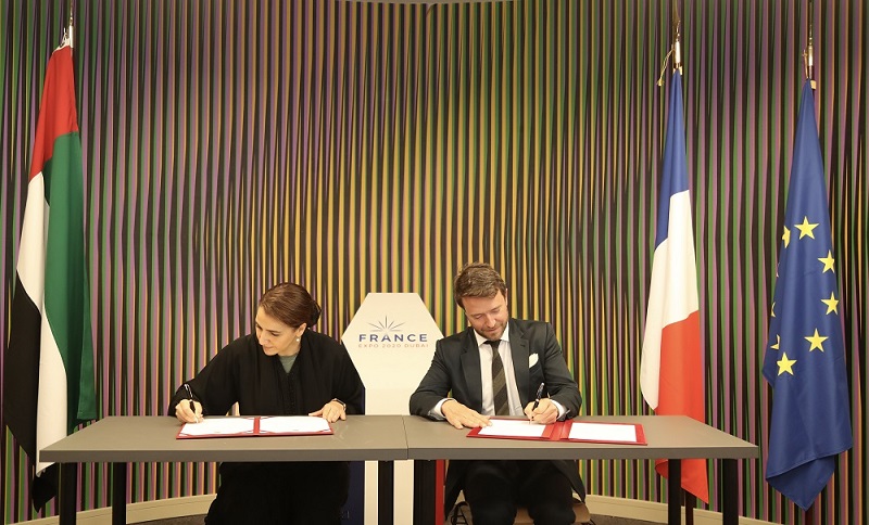 Her Excellency Mariam bint Mohammed Almheiri, UAE Minister of Climate Change and Environment, and His Excellency Xavier Chatel, France’s Ambassador to the UAE, signed the MOU at Expo 2020 Dubai.