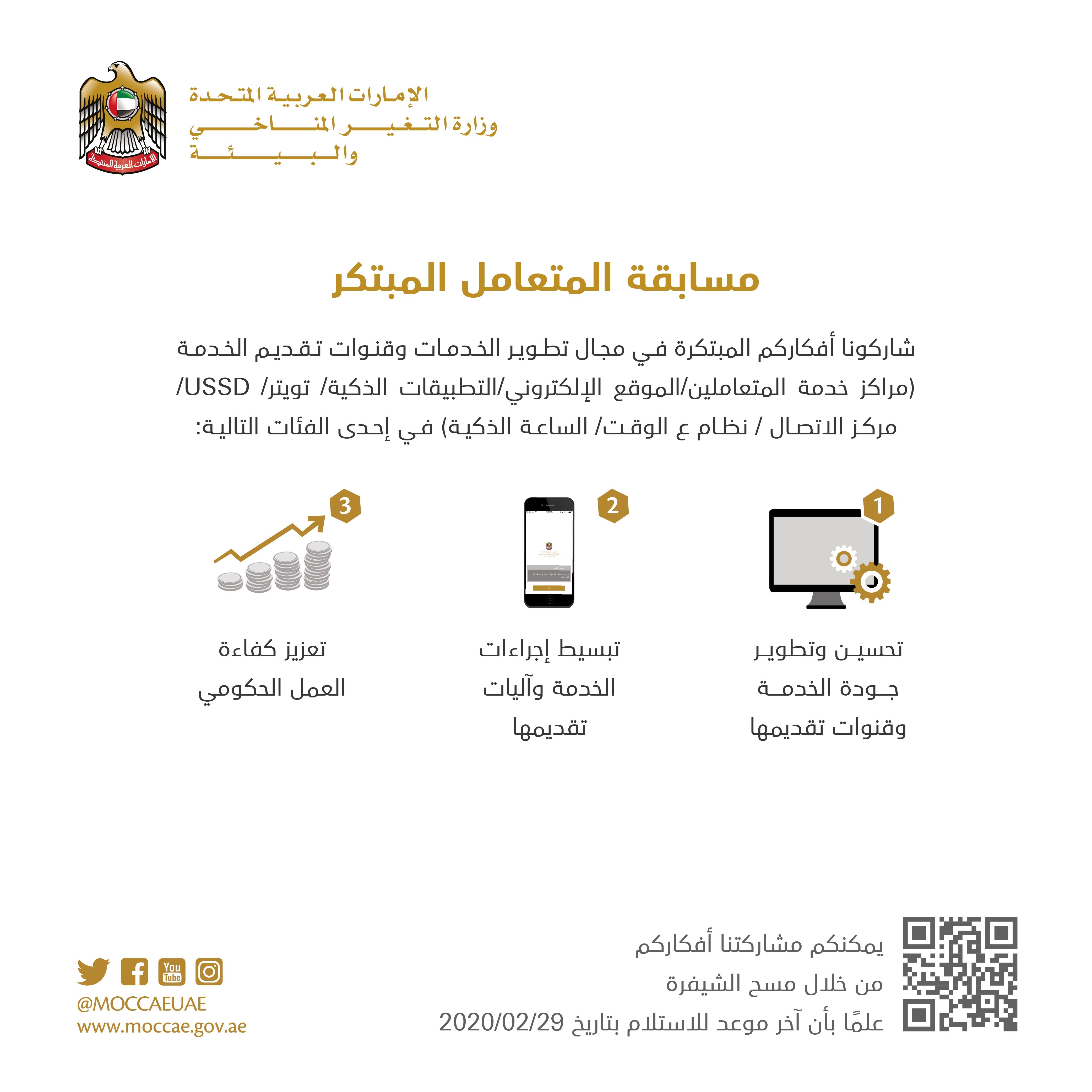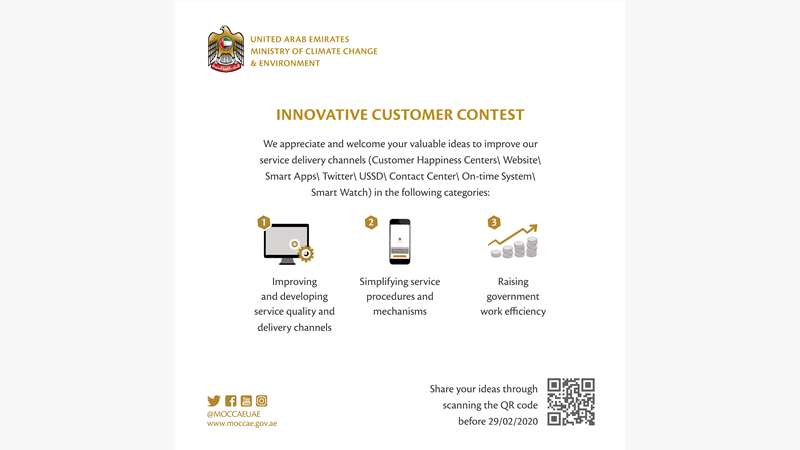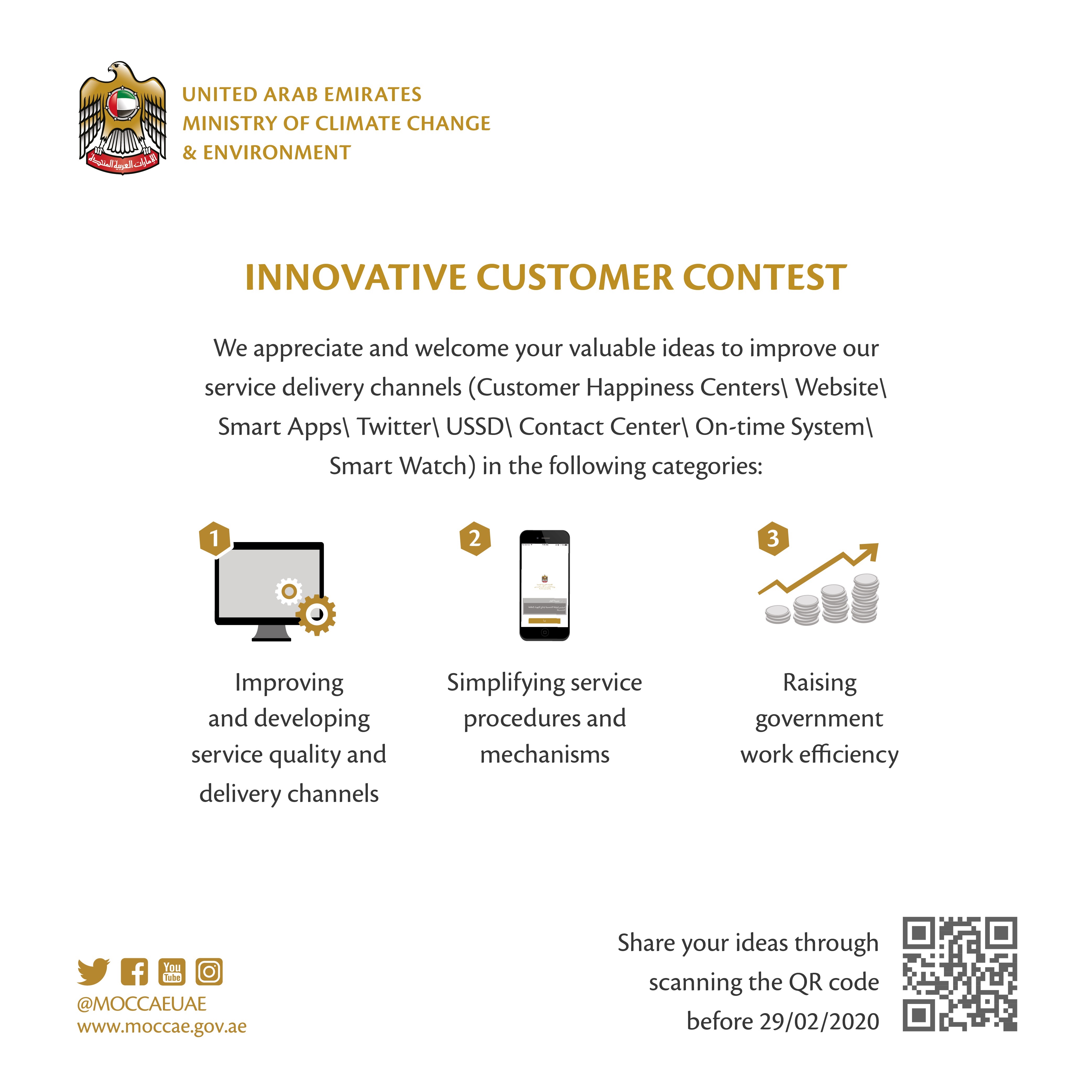Adding an element of healthy competition to the event, throughout February, the Innovative Customer Contest invites customers of UAE government entities, such as MOCCAE, to submit original ideas to improve service quality and delivery channels, and enhance the efficiency of government work through the 171 Tawasul platform. The best ideas will win rewards.