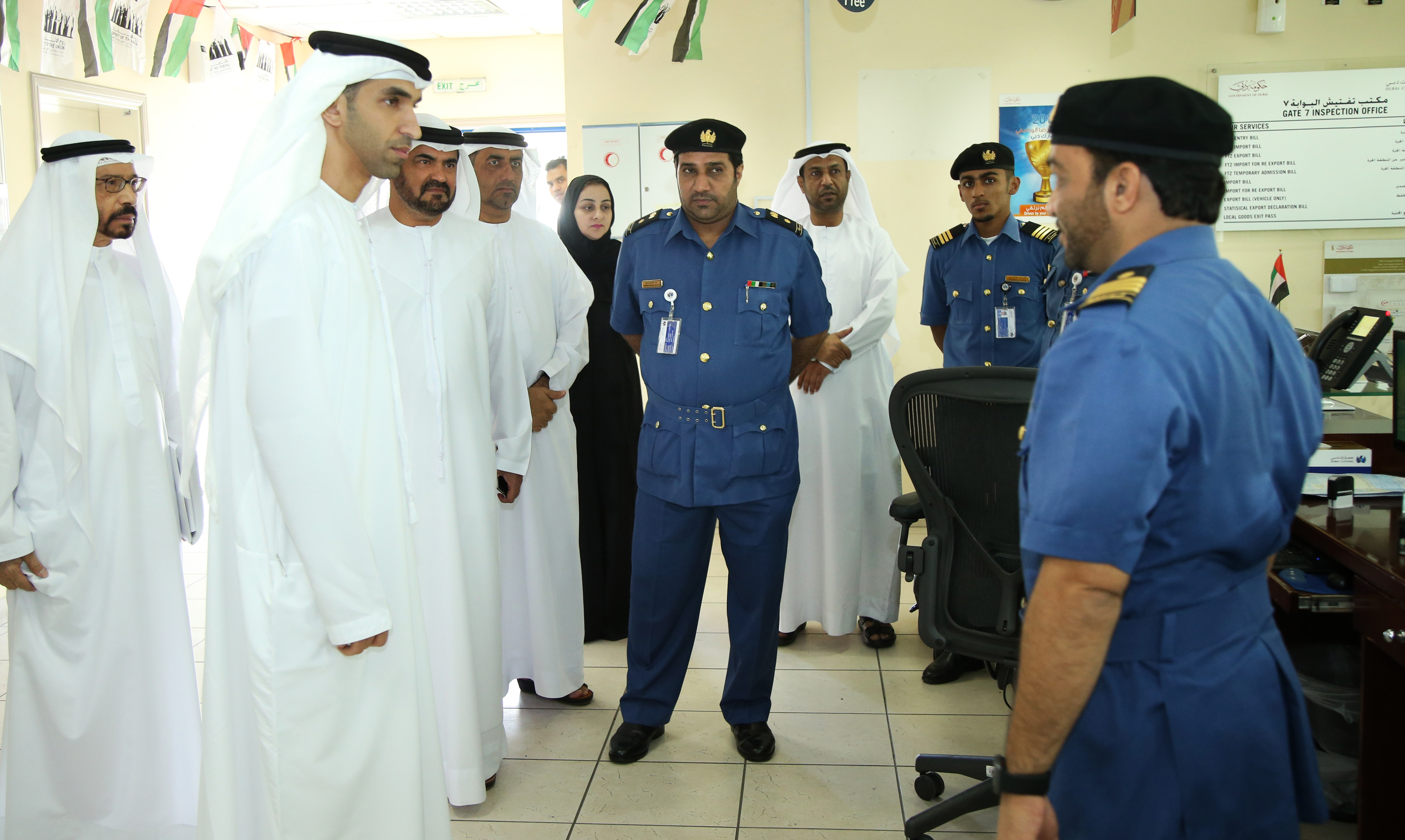The Minister emphasized the importance of Jebel Ali Port for the country, due to the high volume of import and export the facility handles, resulting in a large number of daily transactions performed by employees. He praised the experienced and qualified employees of the Center who finalize all transactions according to the highest global standards and practices to ensure an accurate, fluid and quick trading process while ensuring the safety of goods and its compliance with the standards.