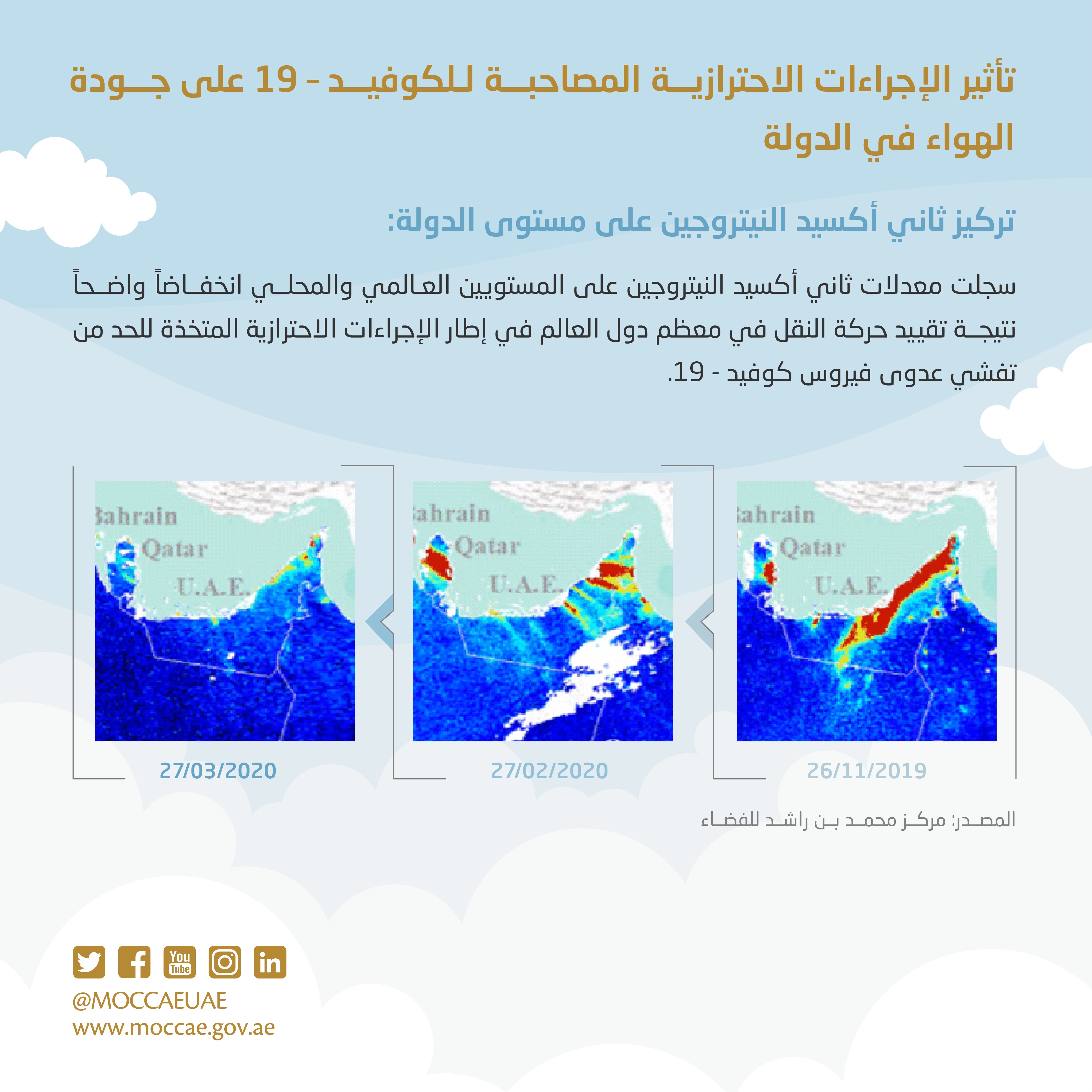التغير المناخي والبيئة تسجل 30% انخفاض في ملوثات " ثاني أكسيد النيتروجين" على مستوى الدولة حتى نهاية ابريل