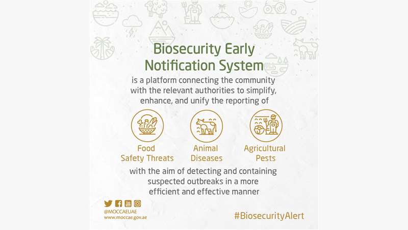 The Ministry of Climate Change and Environment (MOCCAE) today unveiled the online Biosecurity Early Notification System, accessible at https://biosecalert.ae. The unified national platform enables the public to report suspected cases of emerging epidemic threats and foodborne diseases with the aim of facilitating early identification and verification of outbreaks.