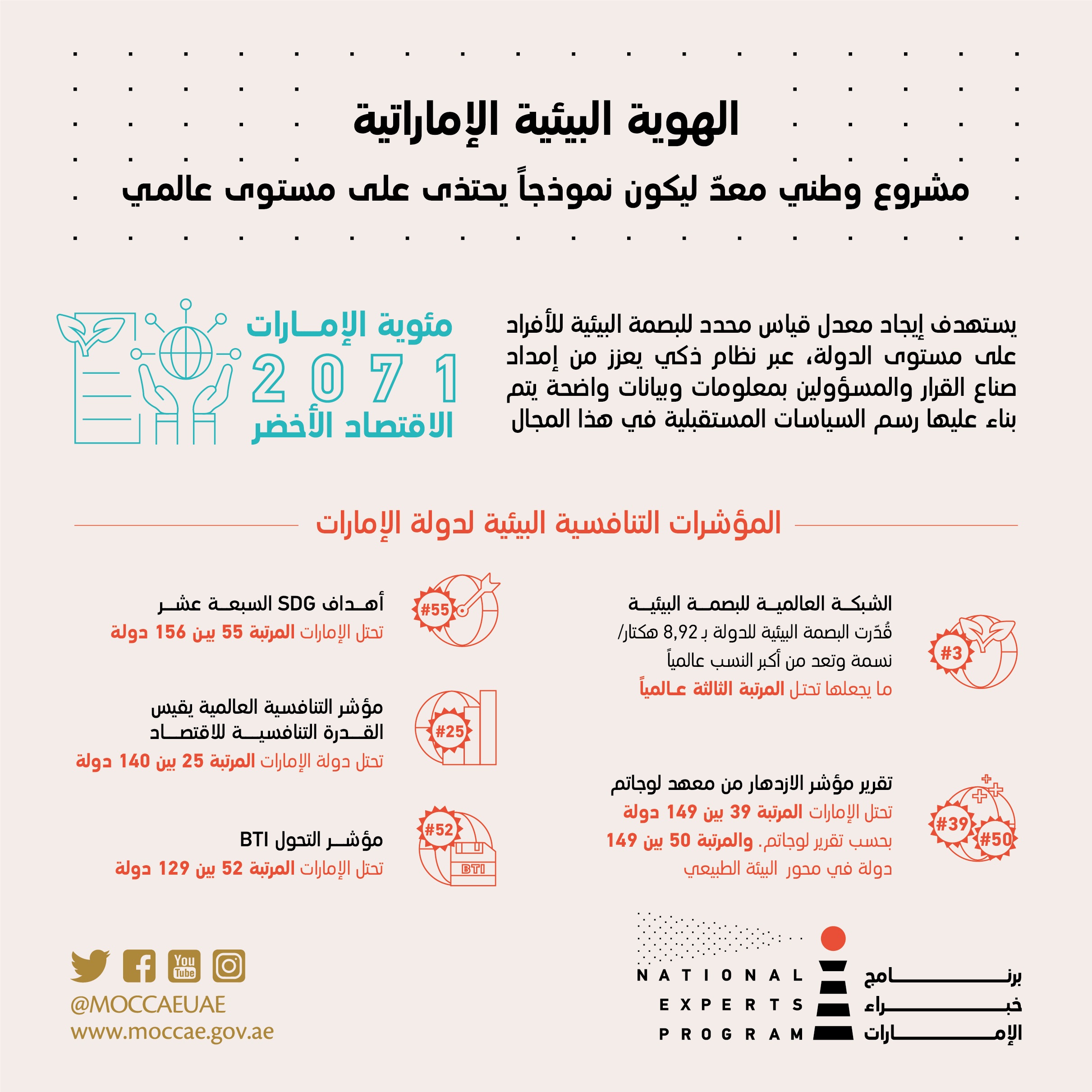 His Excellency Dr Al Zeyoudi said: “The National Experts Program is a prime example of the UAE leadership’s efforts to harness youth and innovation in driving the sustainability agenda across the board. The UAE Environmental Identity project was handpicked from a host of similar initiatives submitted as part of the Program, given the importance of creating an integrated database of per capita footprint nationwide to raise awareness of sustainable consumption practices and make informed decisions. The project will promote our shift to a green and circular economy.”